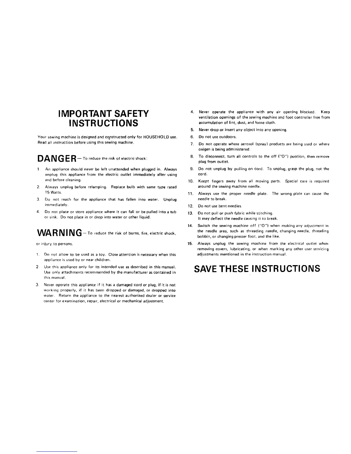 Your sewing machine is designed and constructed only for HOUSEHOLD use.