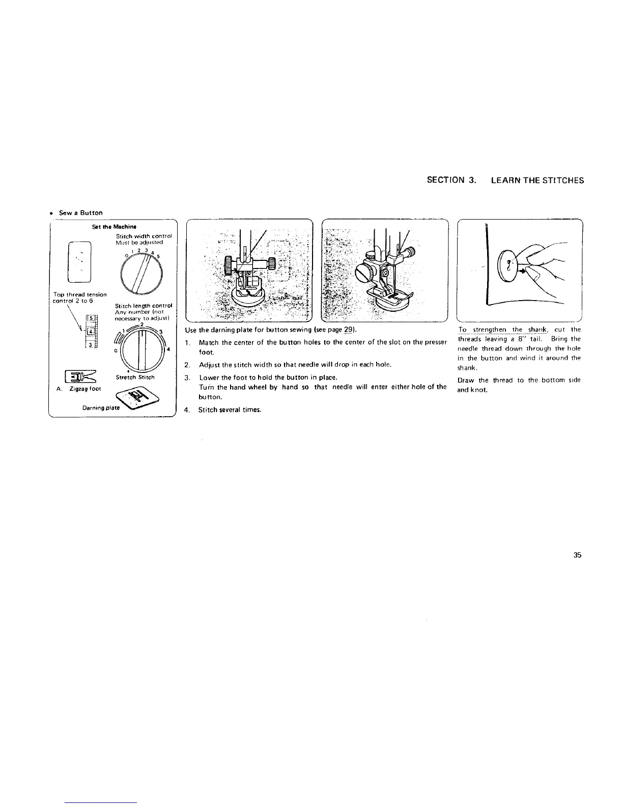 1. Match the center of the button hoJes to the center of the slot on the presser
