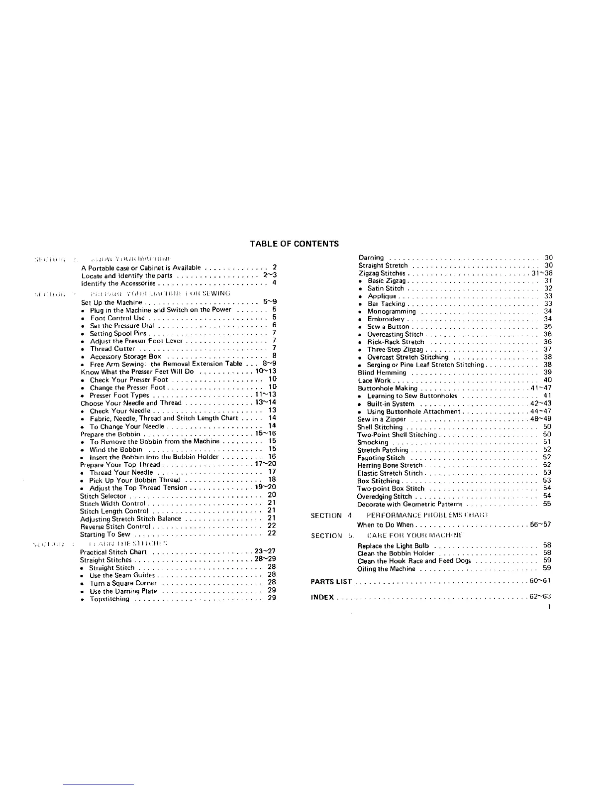 • Fabric, Needle, Thread and Stitch Length Chart ..... 14