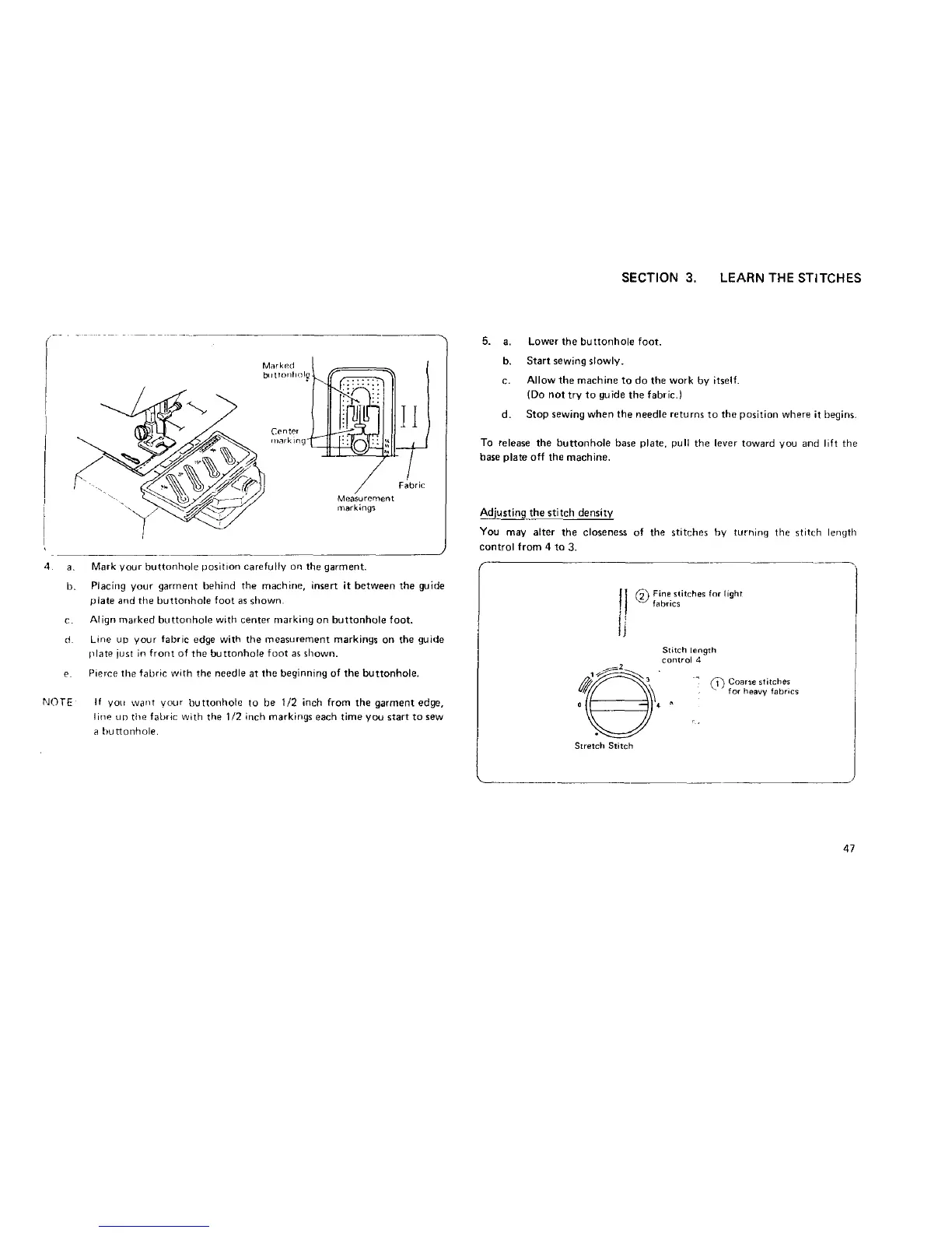 plate and the buttonhole foot as shown.