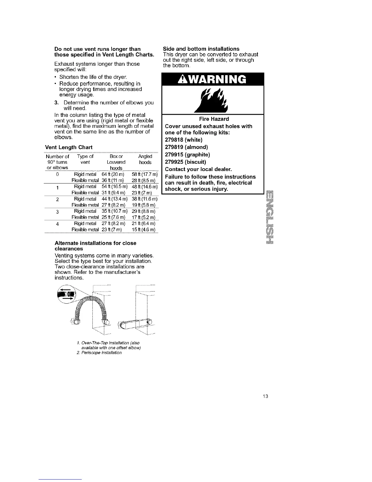 those specified in Vent Length Charts.