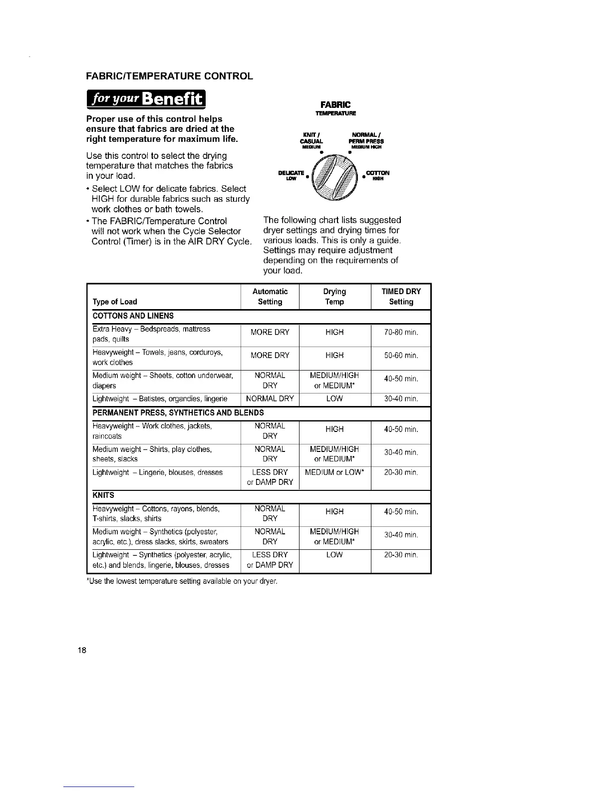 • The FABRIC/Temperature Control