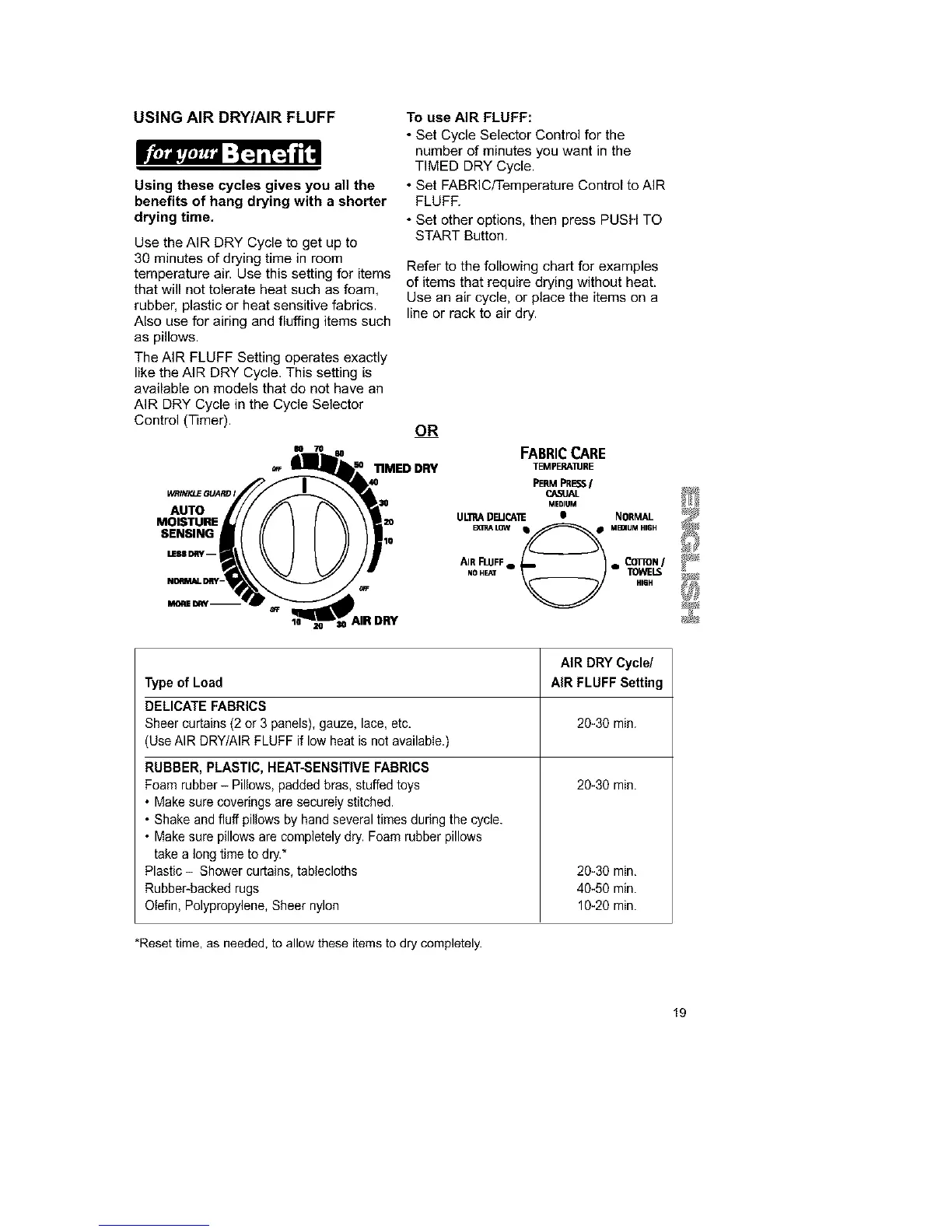 (Use AIR DRY/AIR FLUFF if low heat is not available.)