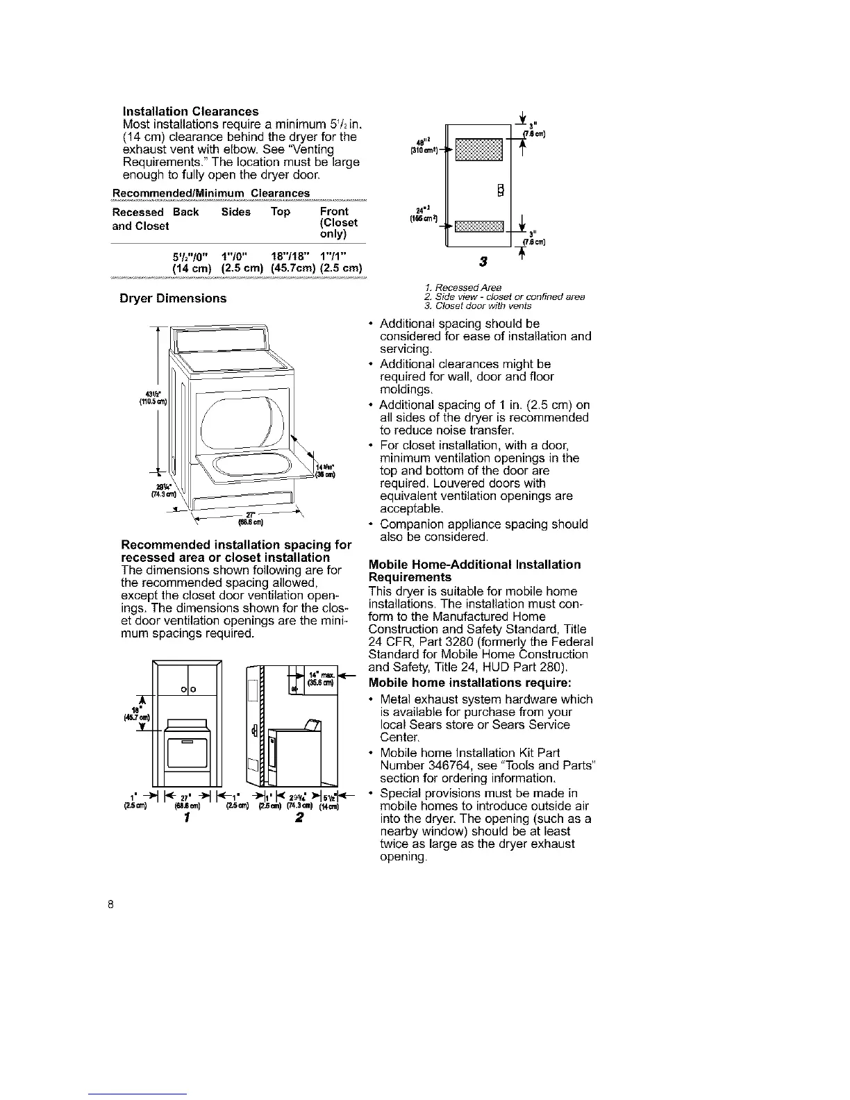 (14 cm) clearance behind the dryer for the