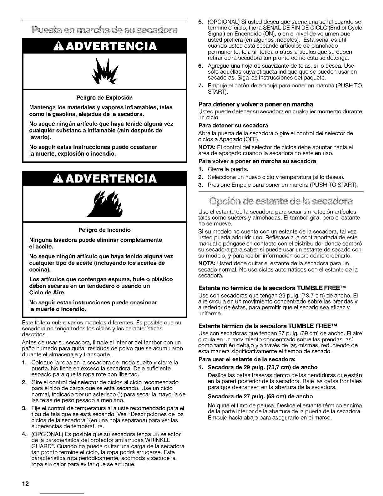 Use con secadoras que tengan 29 pulg. (73,7 cm) de ancho. El