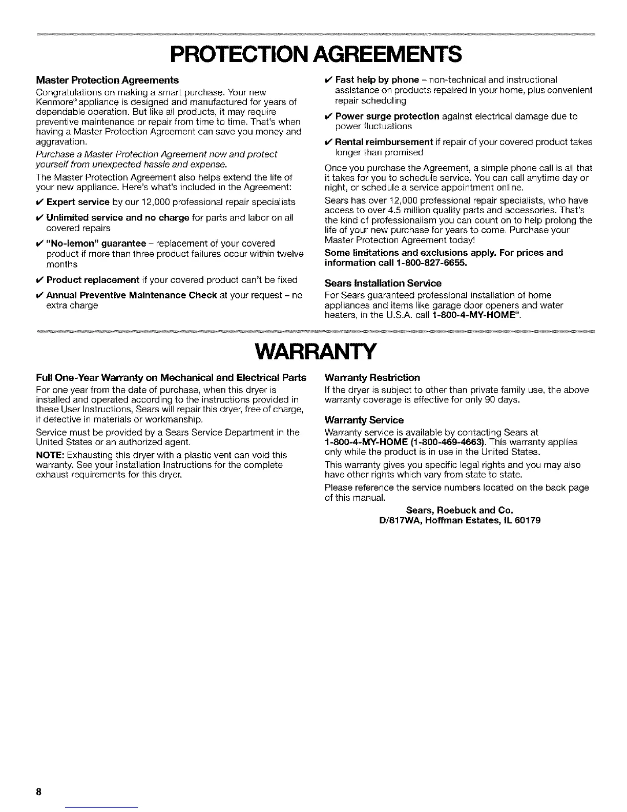 1-800-4-MY-HOME (1-800-469-4663). This warranty applies