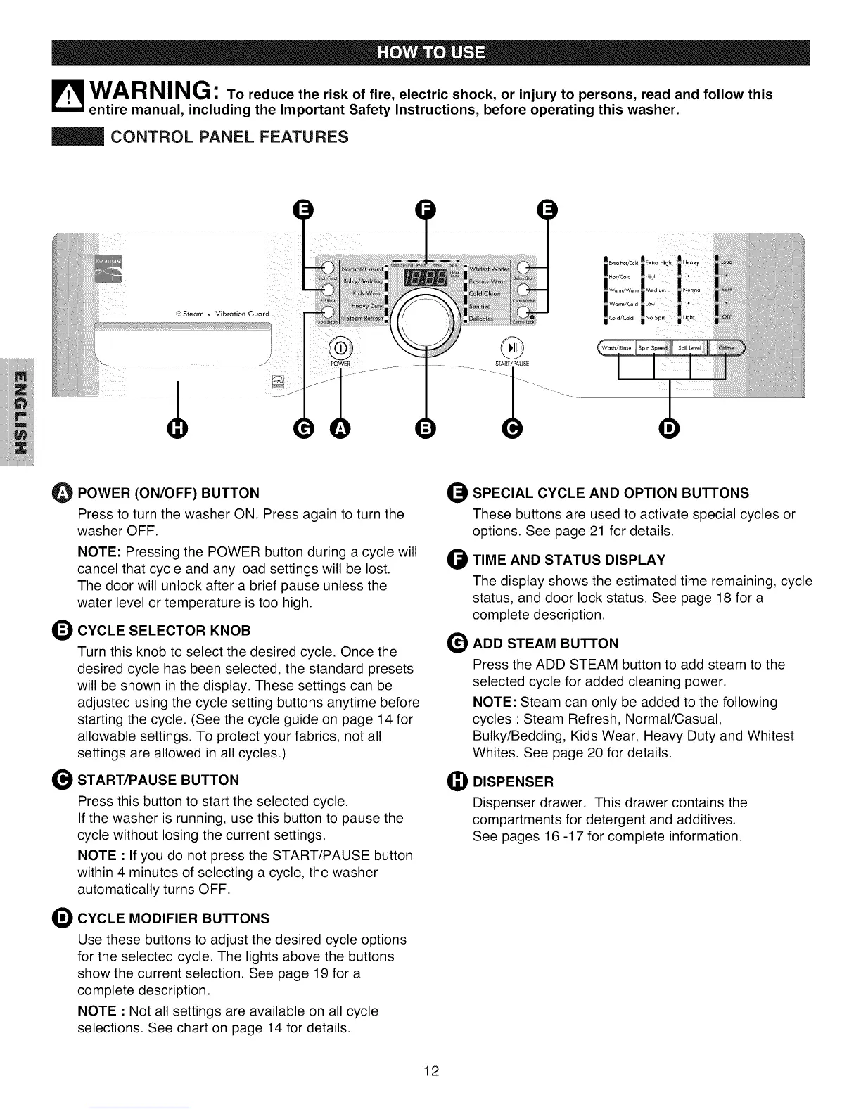 If the washer is running, use this button to pause the