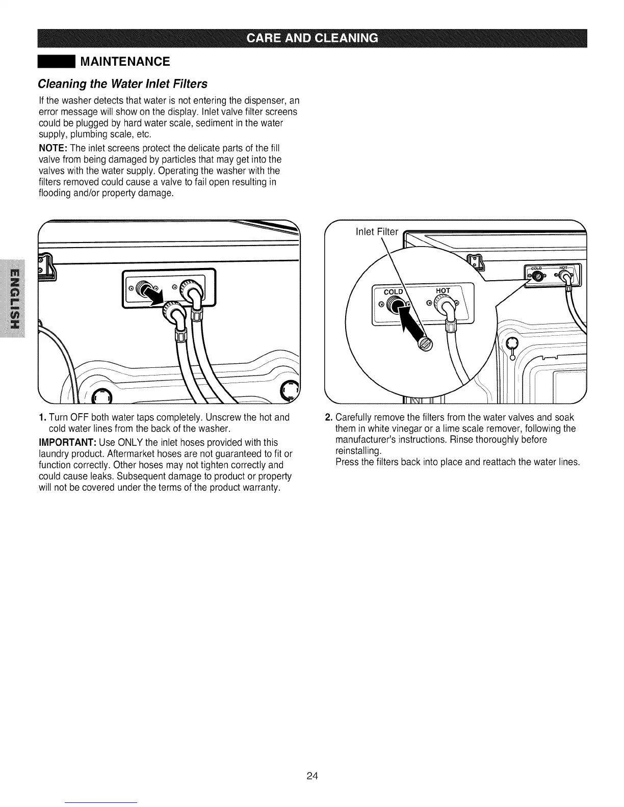 IMPORTANT: Use ONLY the inlet hoses providedwith this