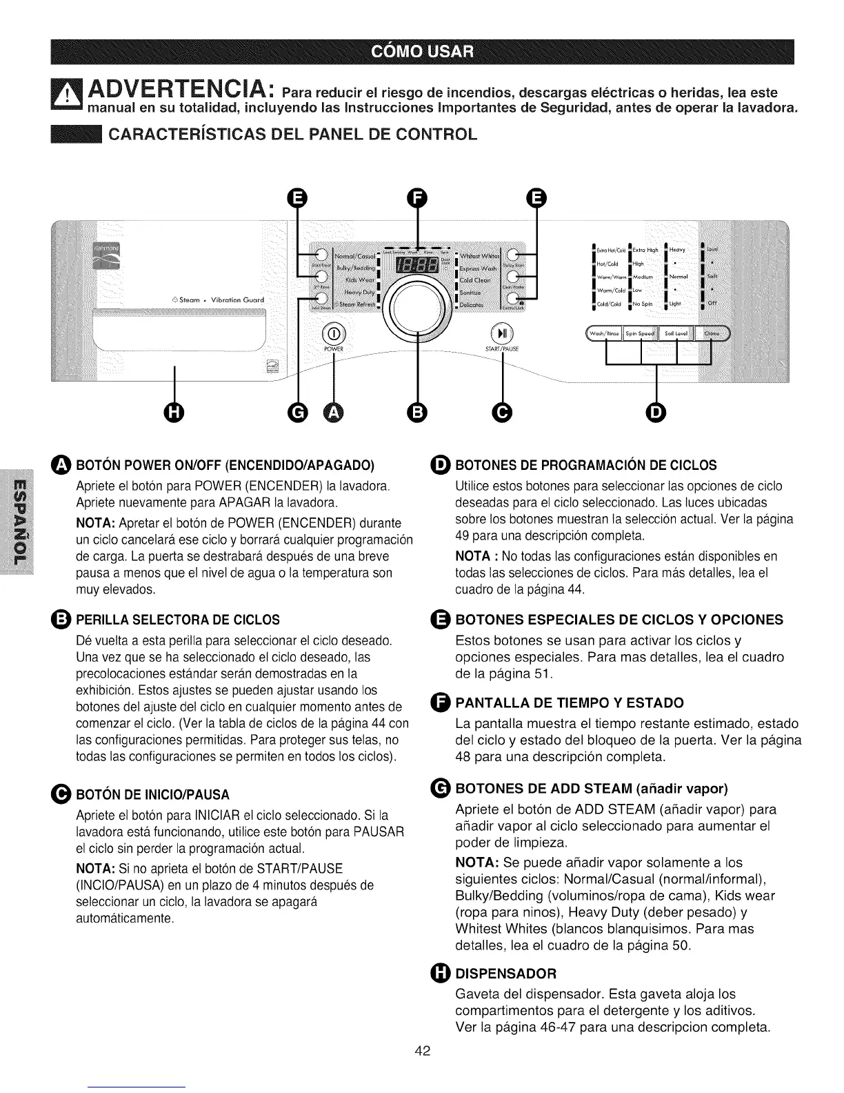 Utitice estos botones para seteccionar tas opciones de ciclo
