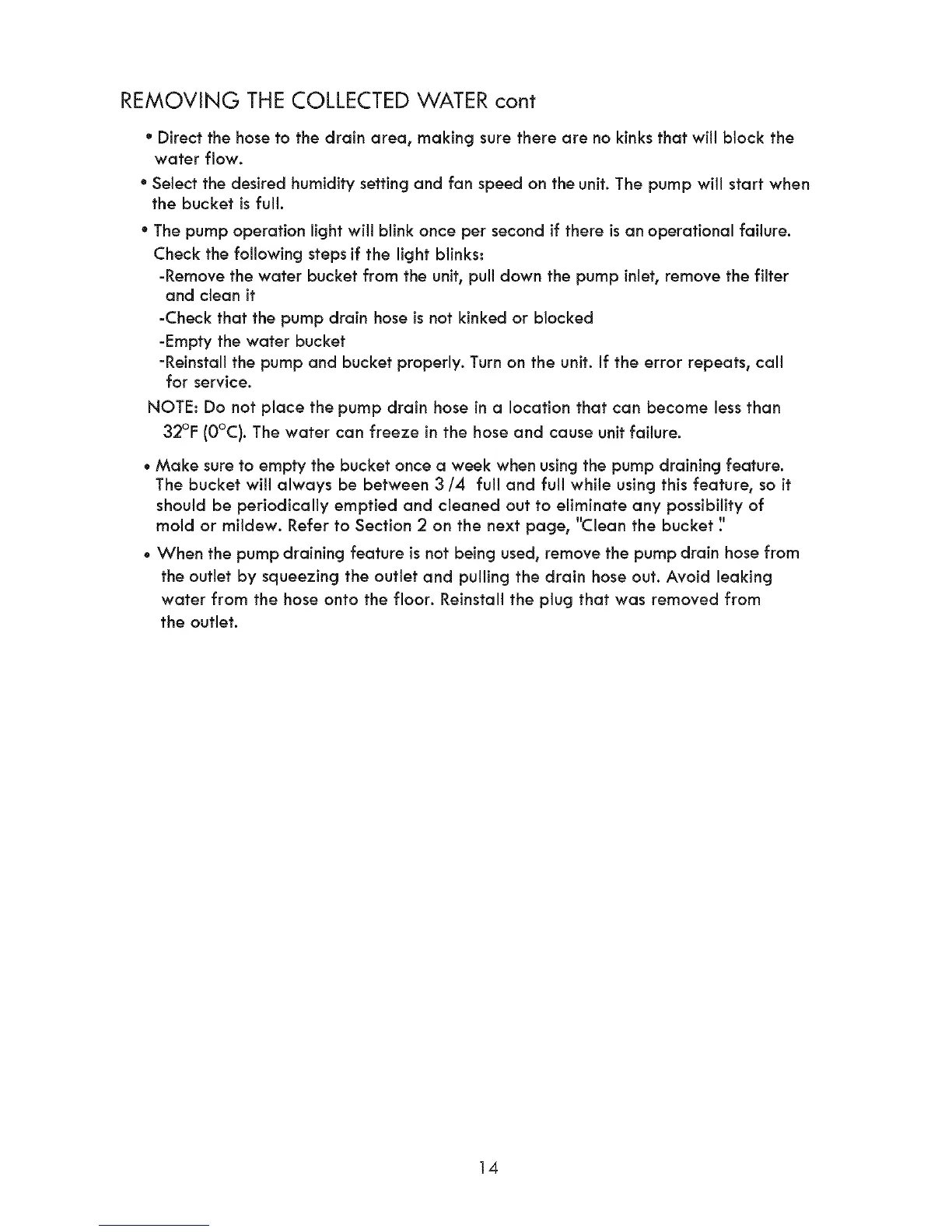° Make sure to empty the bucket once a week when using the pump draining feature.