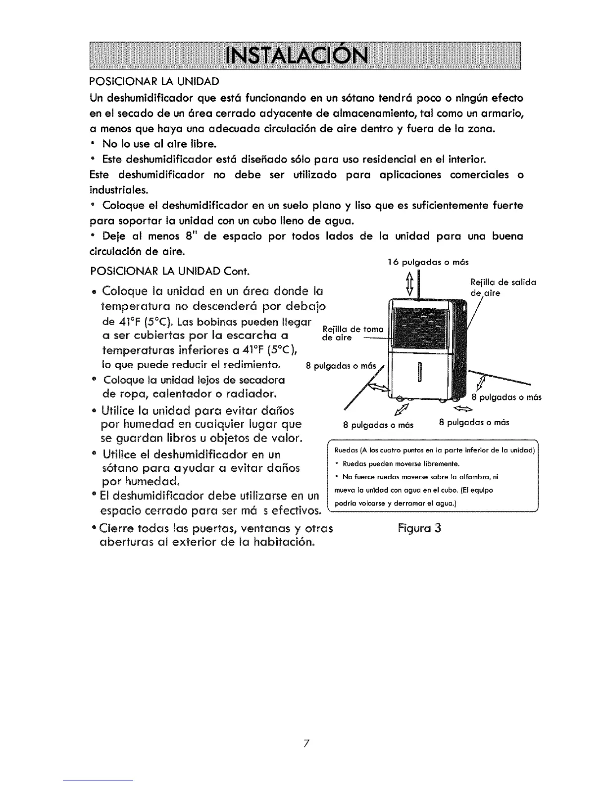 " Deje al menos 8" de espacio por todos lados de la unidad para una buena