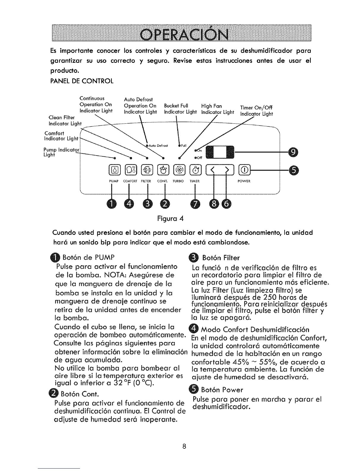 operaci6n de bombeo autom6ficamente. Enel modo de deshumidificaci6n Contort,