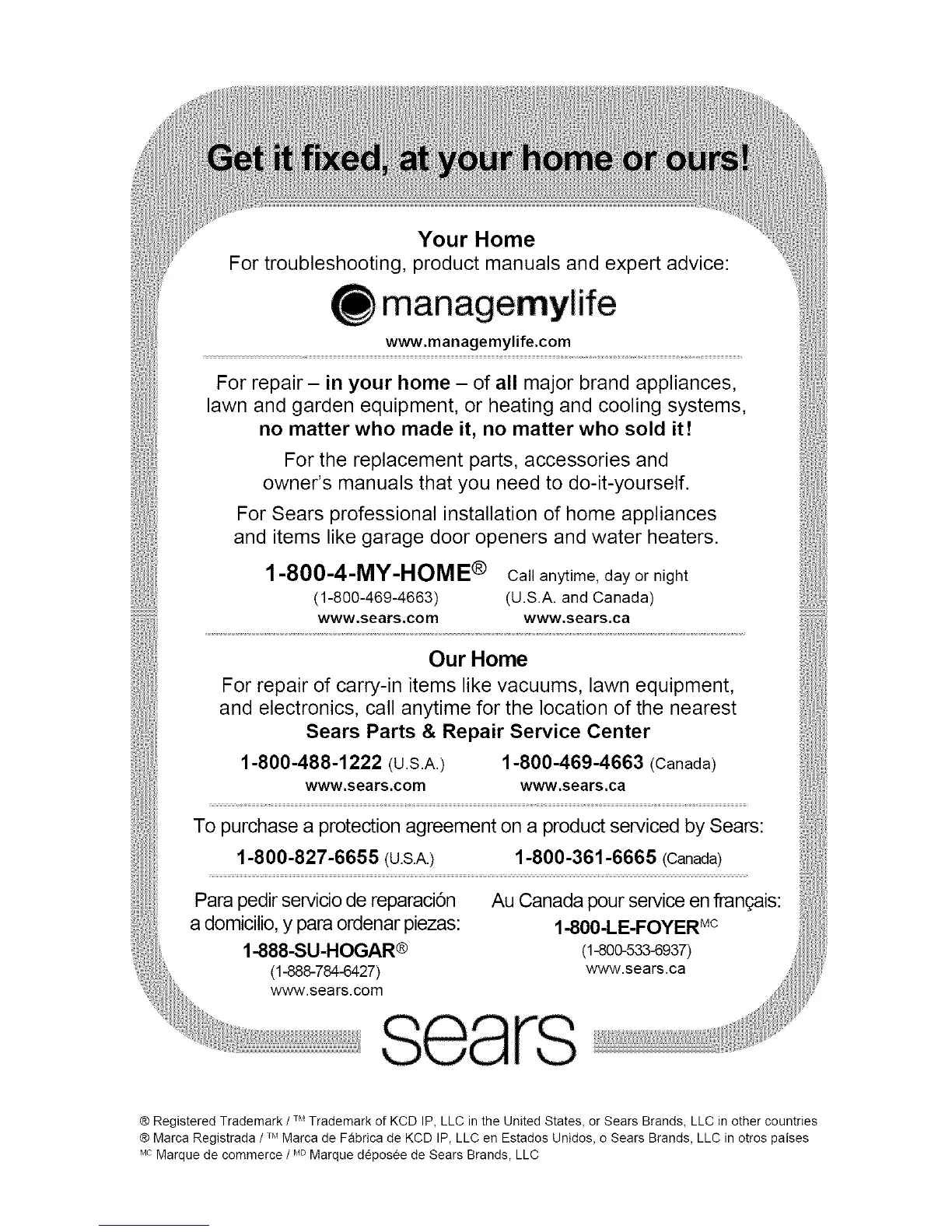 ® Marca Registrada / ' Marca de F_brica de KCD IP, LLC en Estados Unidos, o Sears Brands, LLC in otros paises