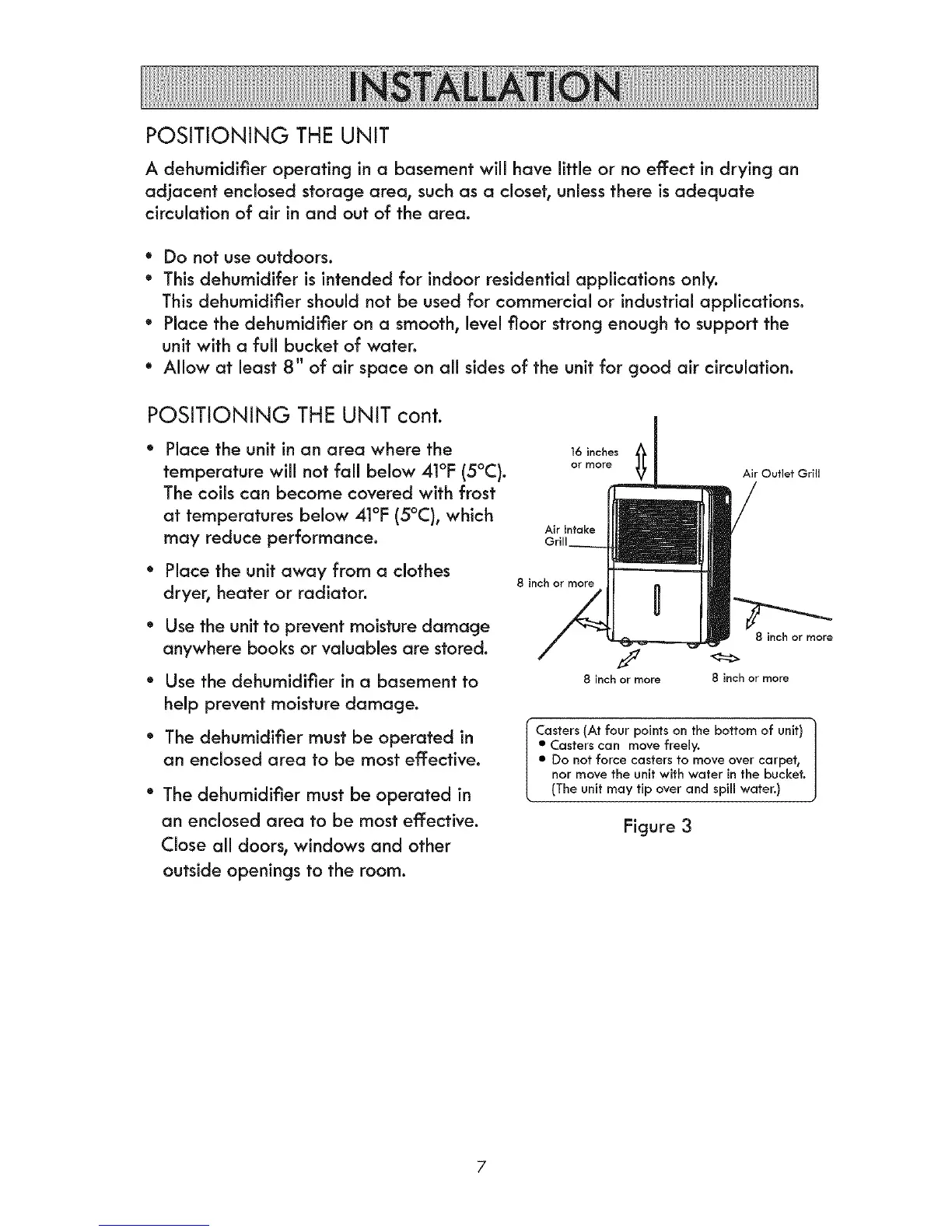 • Allow at least 8" of air space on all sides of the unit for good air circulation.