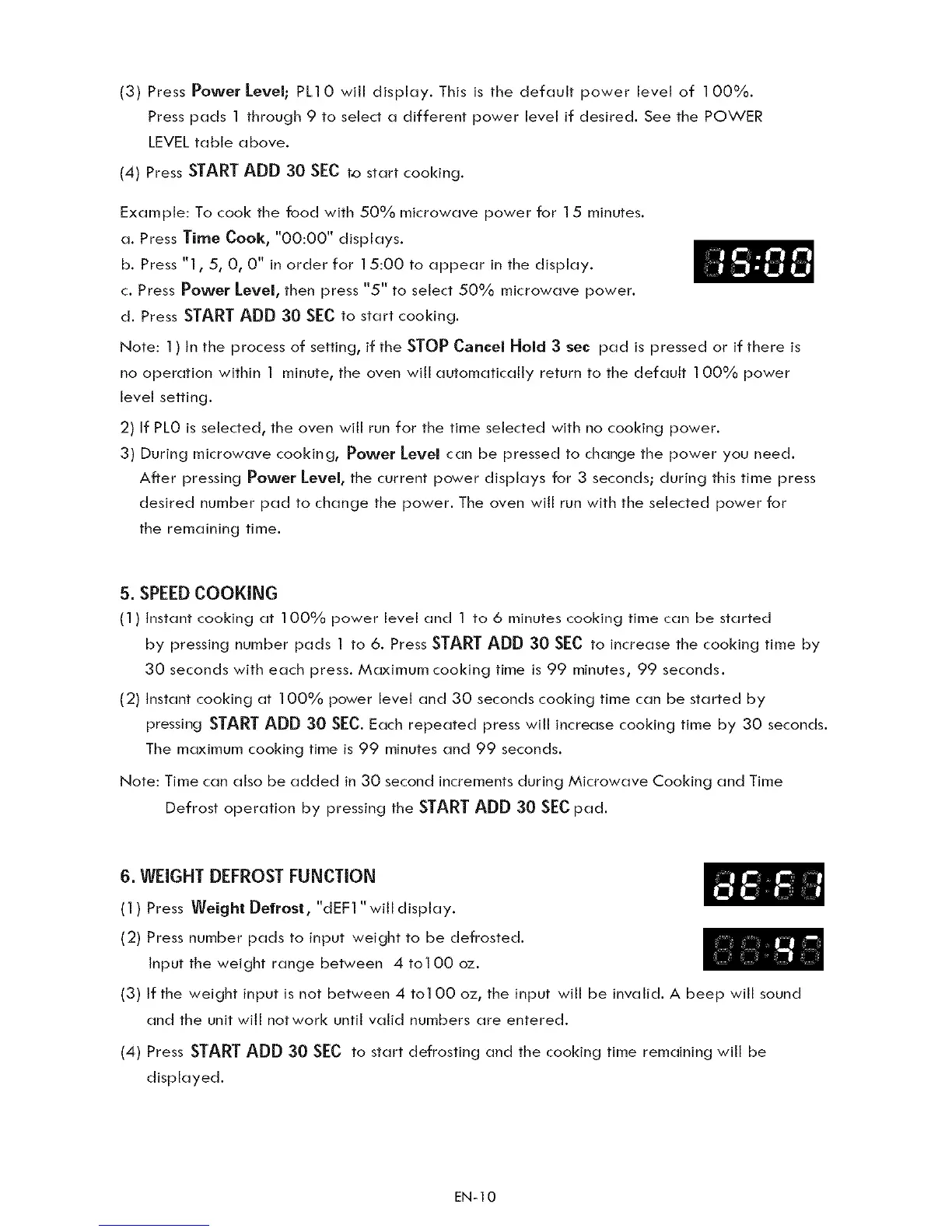 by pressing number pads 1 to 6. Press STARTADD 30 SECto increase the cooking time by