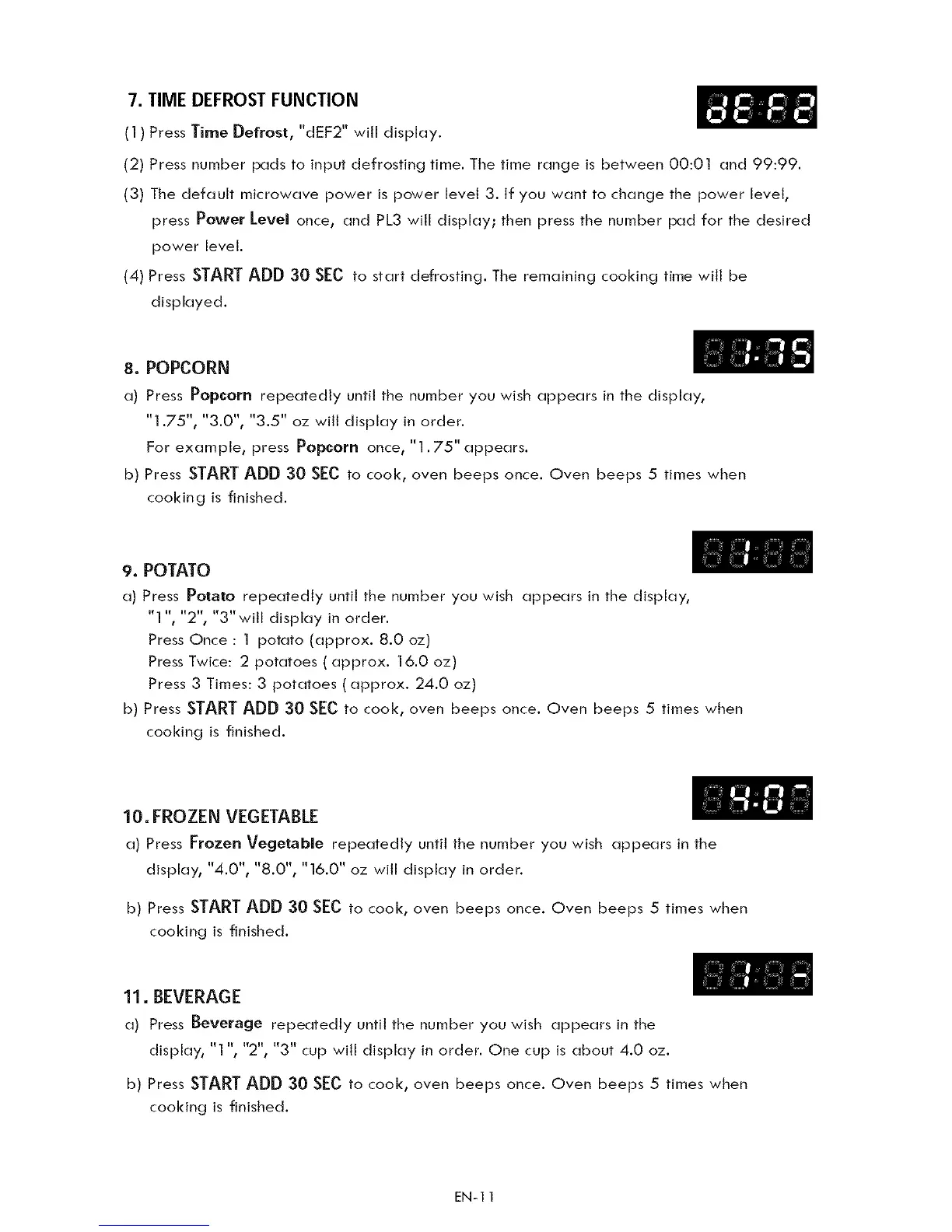 b) Press STARTADD 30 SECto cook, oven beeps once. Oven beeps 5 times when