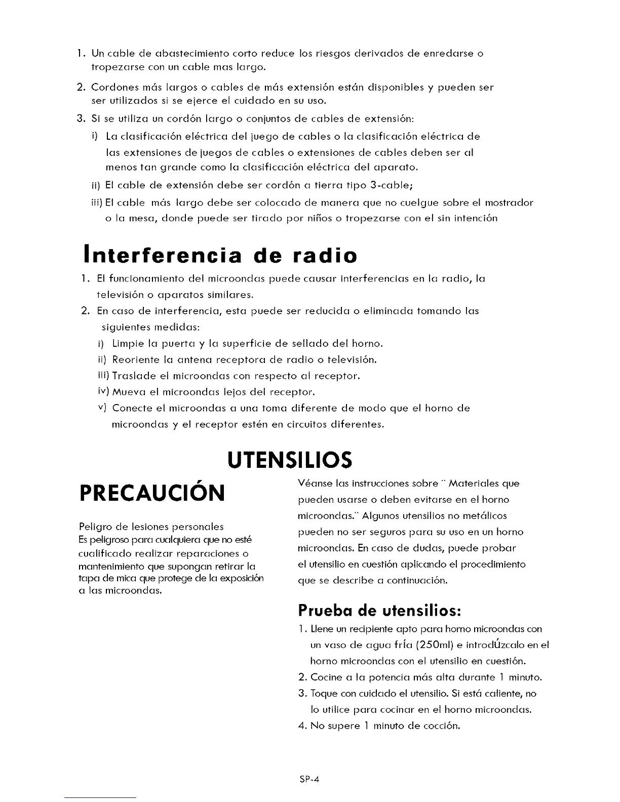 I. El funcionamiento del microondas puede causar interferencias en la radio, la
