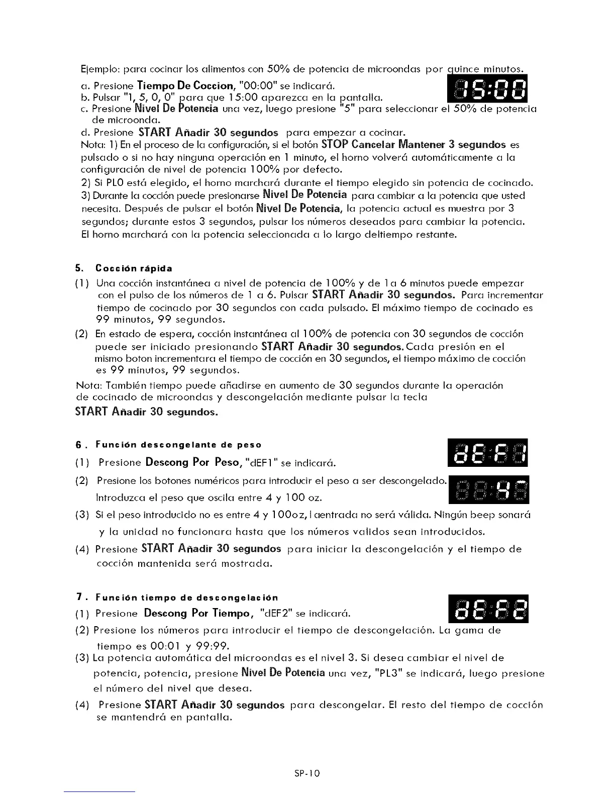 mismo boton incrementara el tiempo de cocci6n en 30 segundos, el tiempo m6ximo de cocci6n