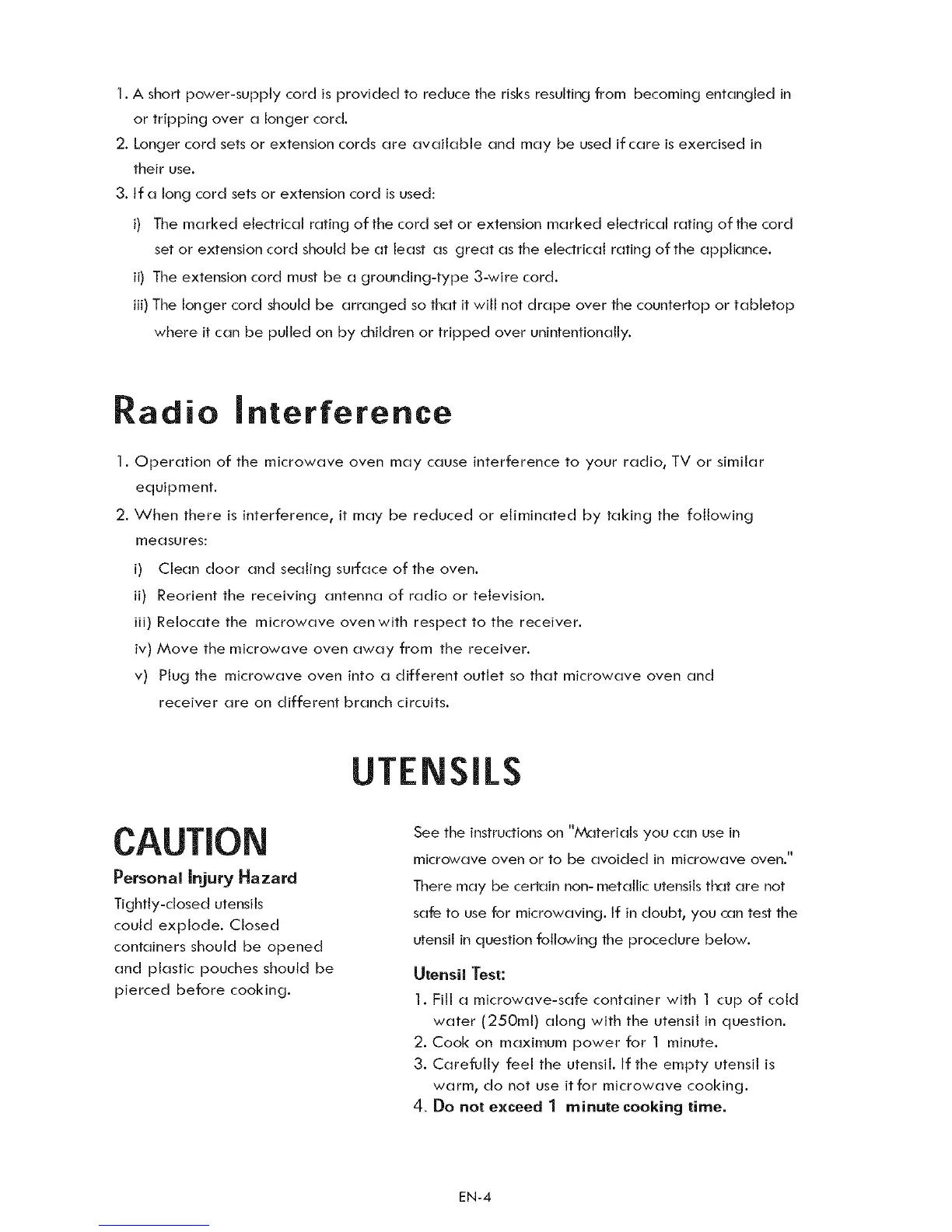 1. Operation of the microwave oven may cause interference to your radio, TV or similar