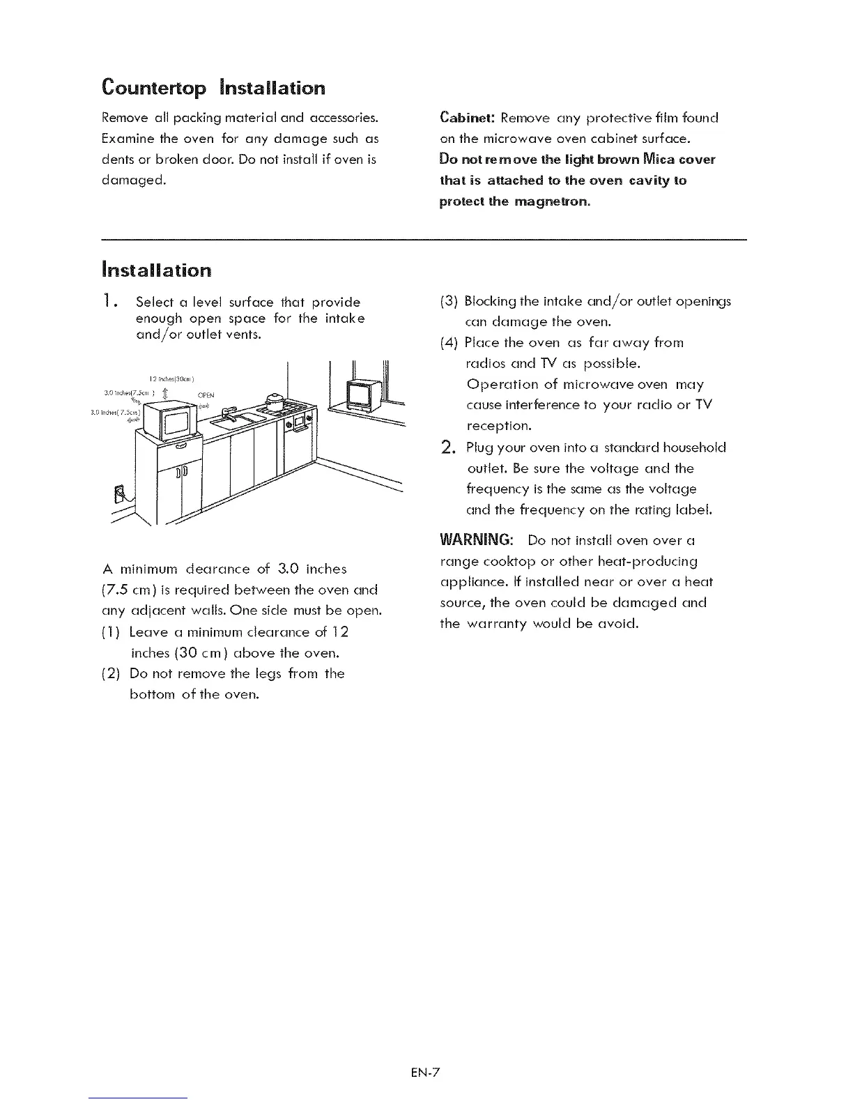 (7.5 cm) is required between the oven and