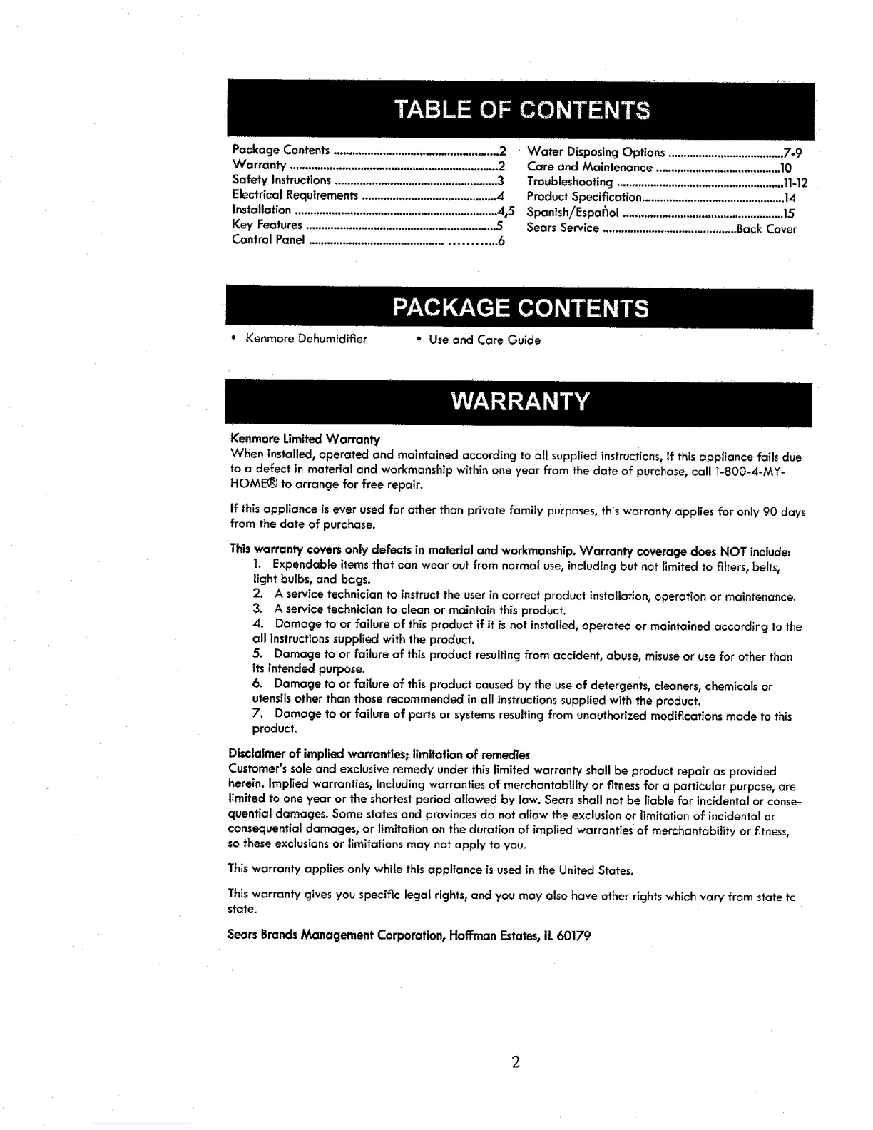 Sears Service ............................................Back Cover