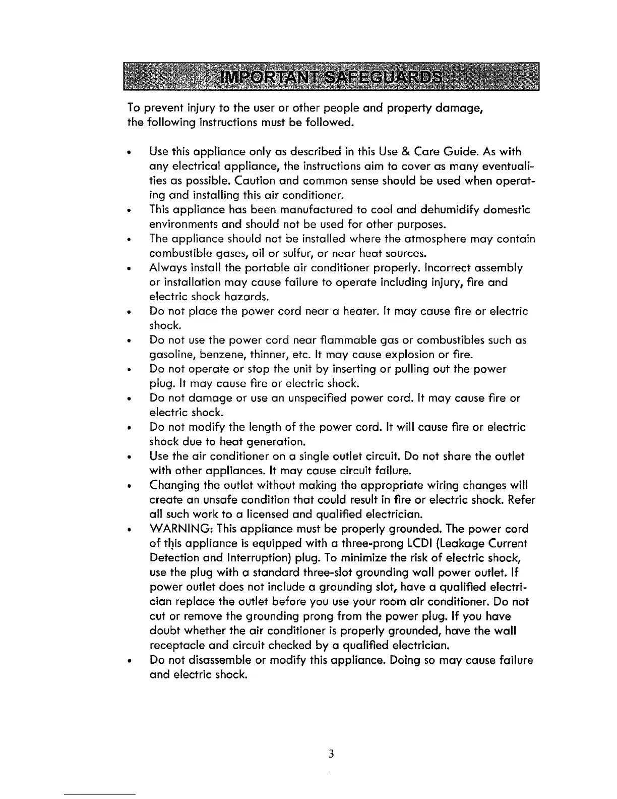 of this appliance is equipped with a three-prong LCDI (Leakage Current