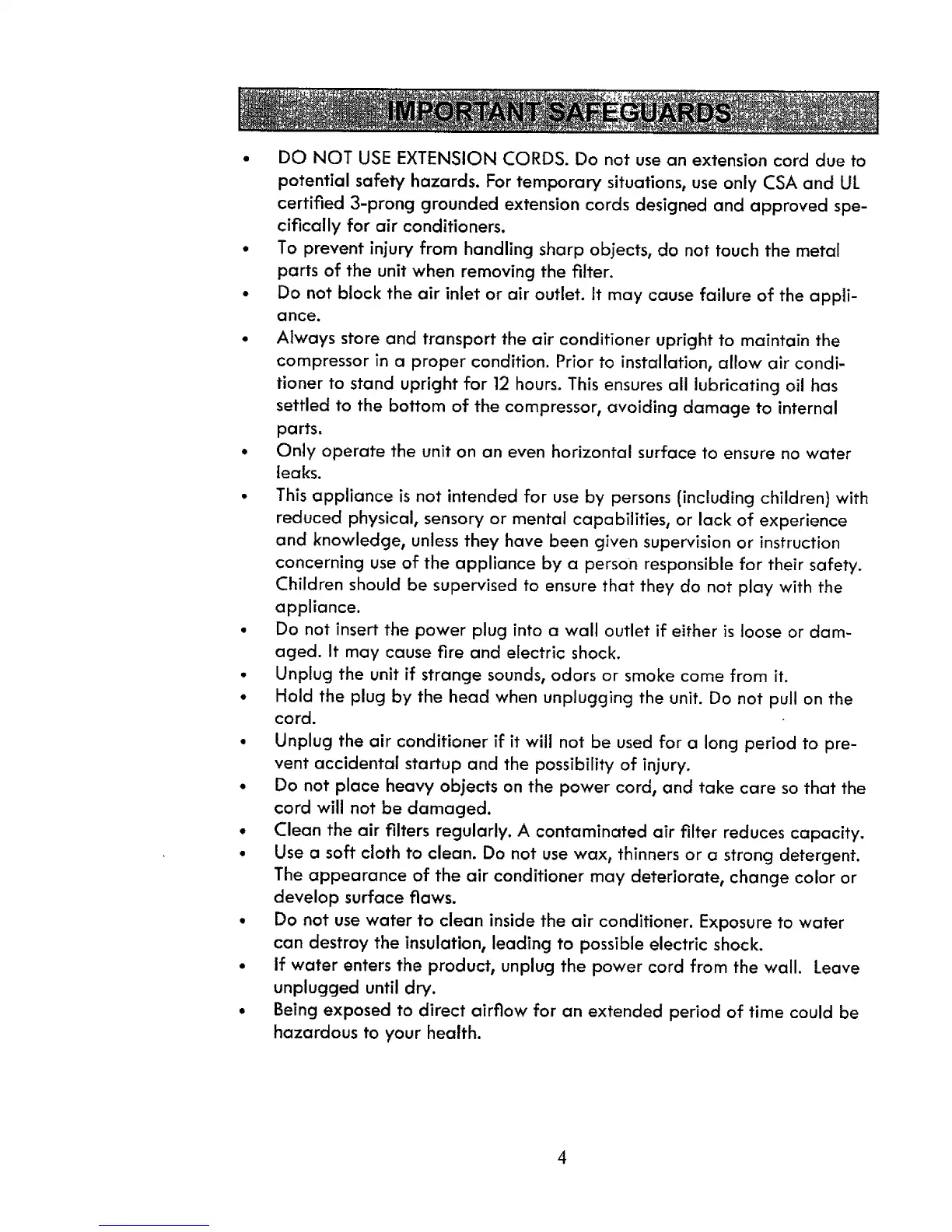 • Unplug the air conditioner if it will not be used for a long period to pre-