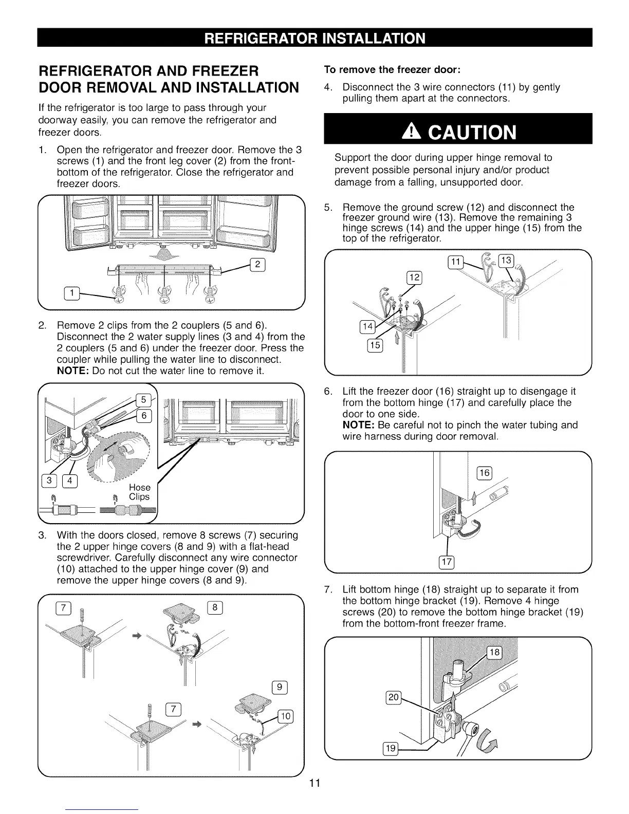 the 2 upper hinge covers (8 and 9) with a flat-head