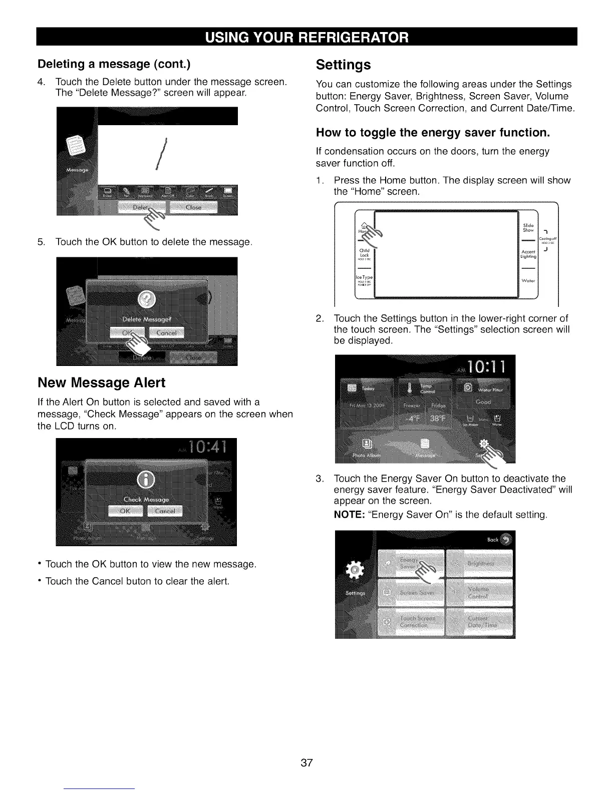 Touch the Energy Saver On button to deactivate the