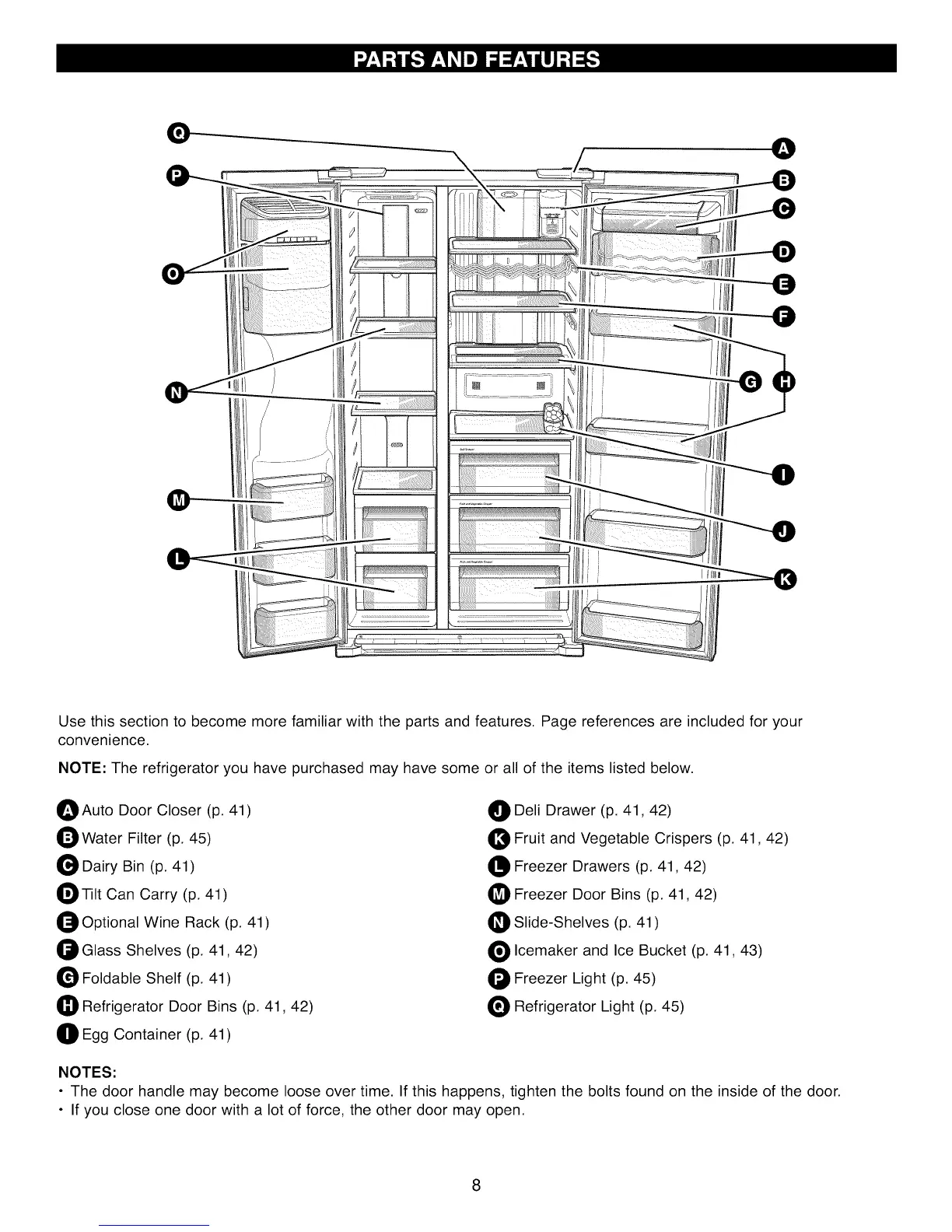 NOTE: The refrigerator you have purchased may have some or all of the items listed below.