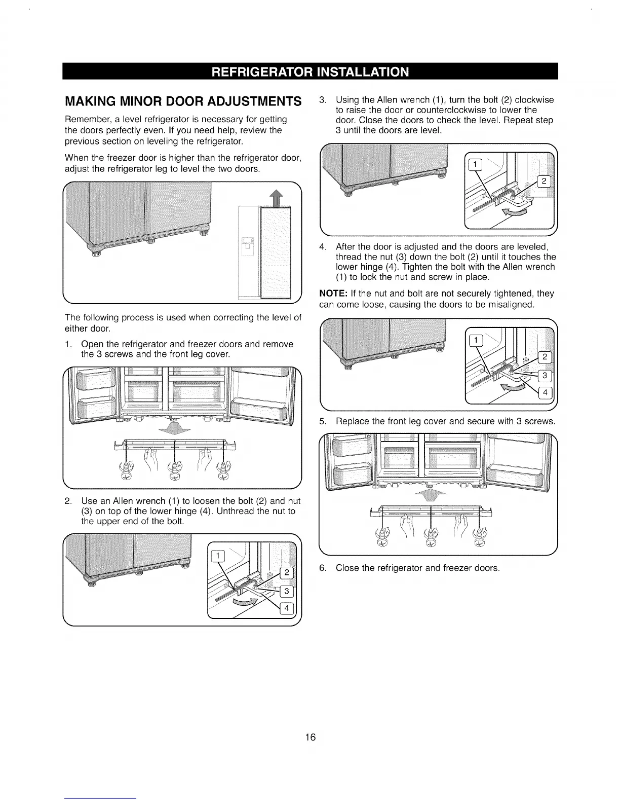 lower hinge (4). Tighten the bolt with the Allen wrench