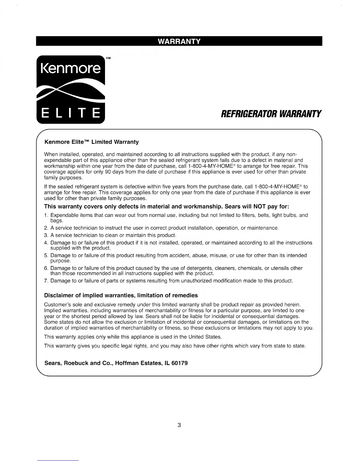 If the sealed refrigerant system is defective within five years from the purchase date, call 1-800-4-MY-HOME _ to