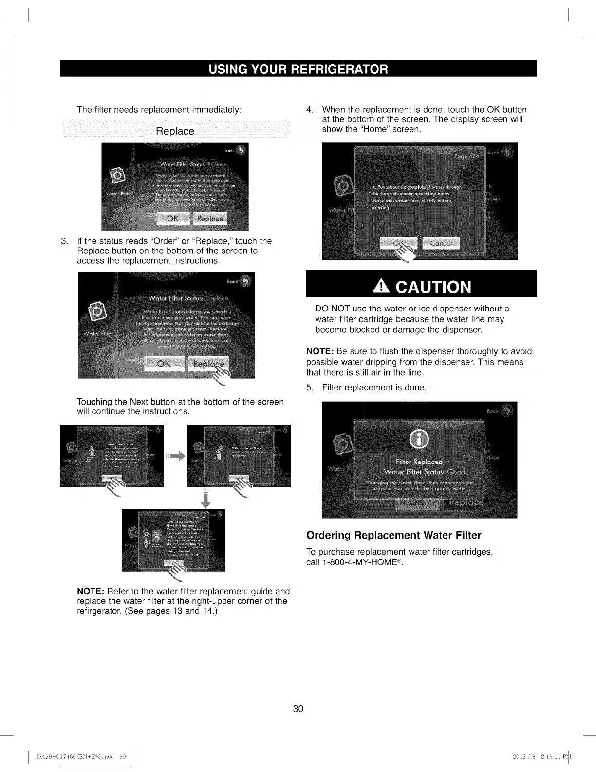 The filter needs replacement immediately: 4. When the replacement is done, touch the OK button