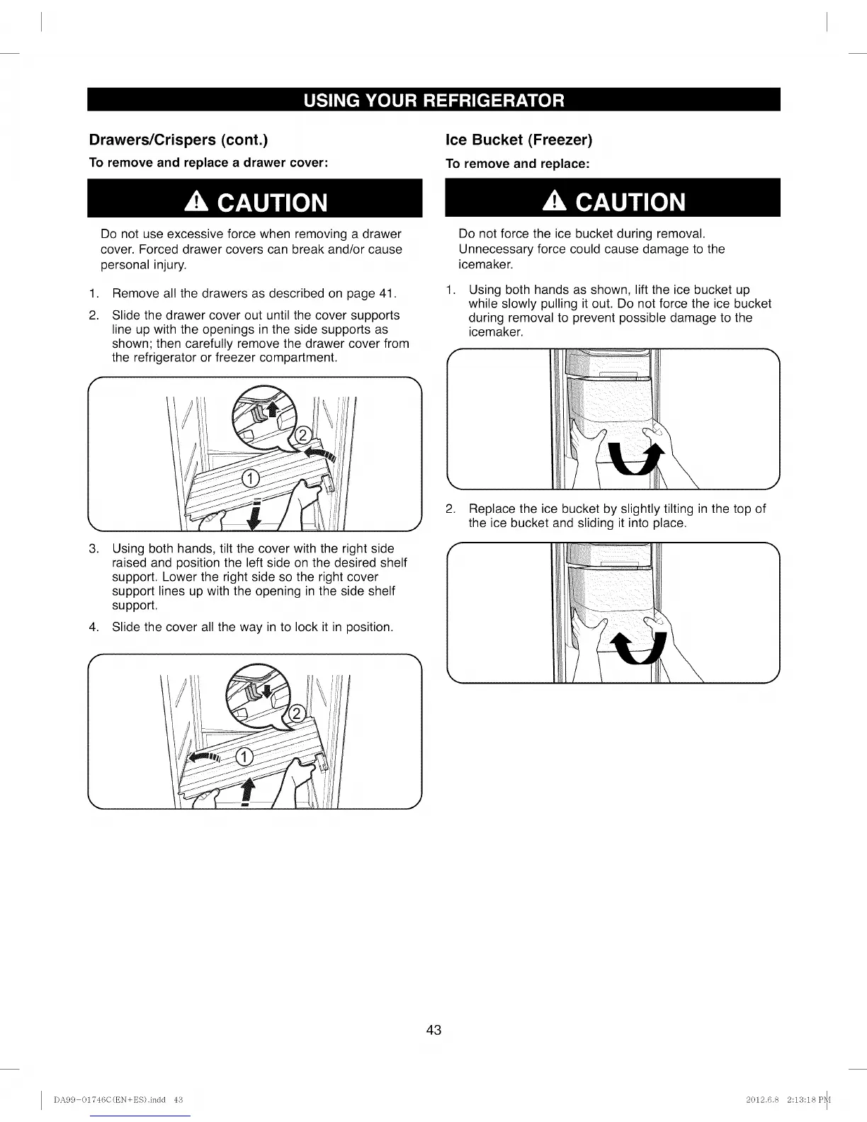 while slowly pulling it out. Do not force the ice bucket