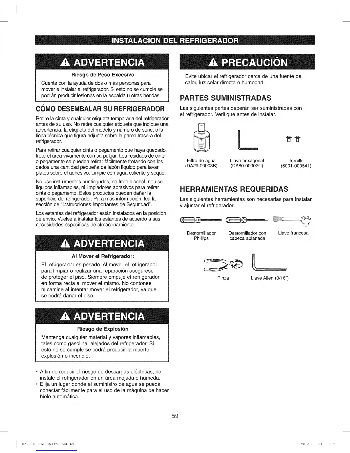 superficie del refrigerador. Para m&s informaci6n, lea la