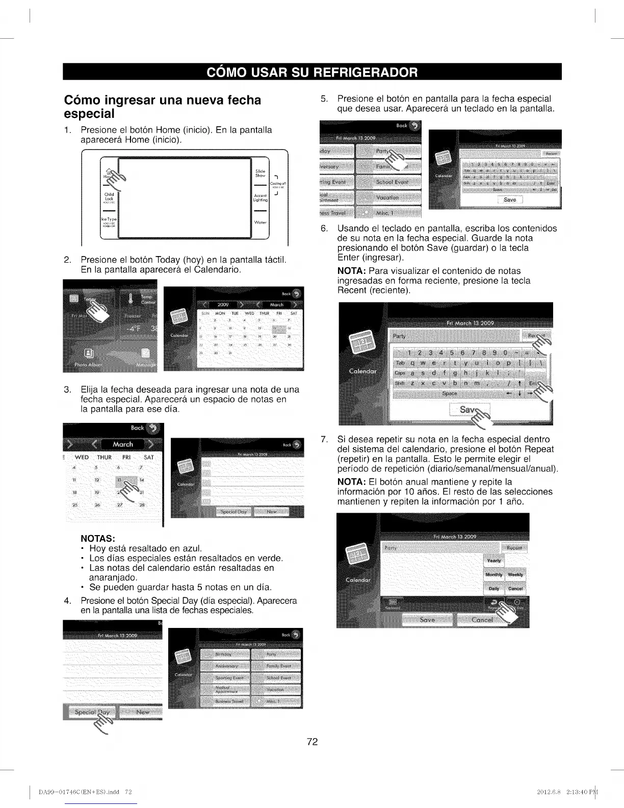 2. Presione el boton Today (hoy) en la pantalla tactil.