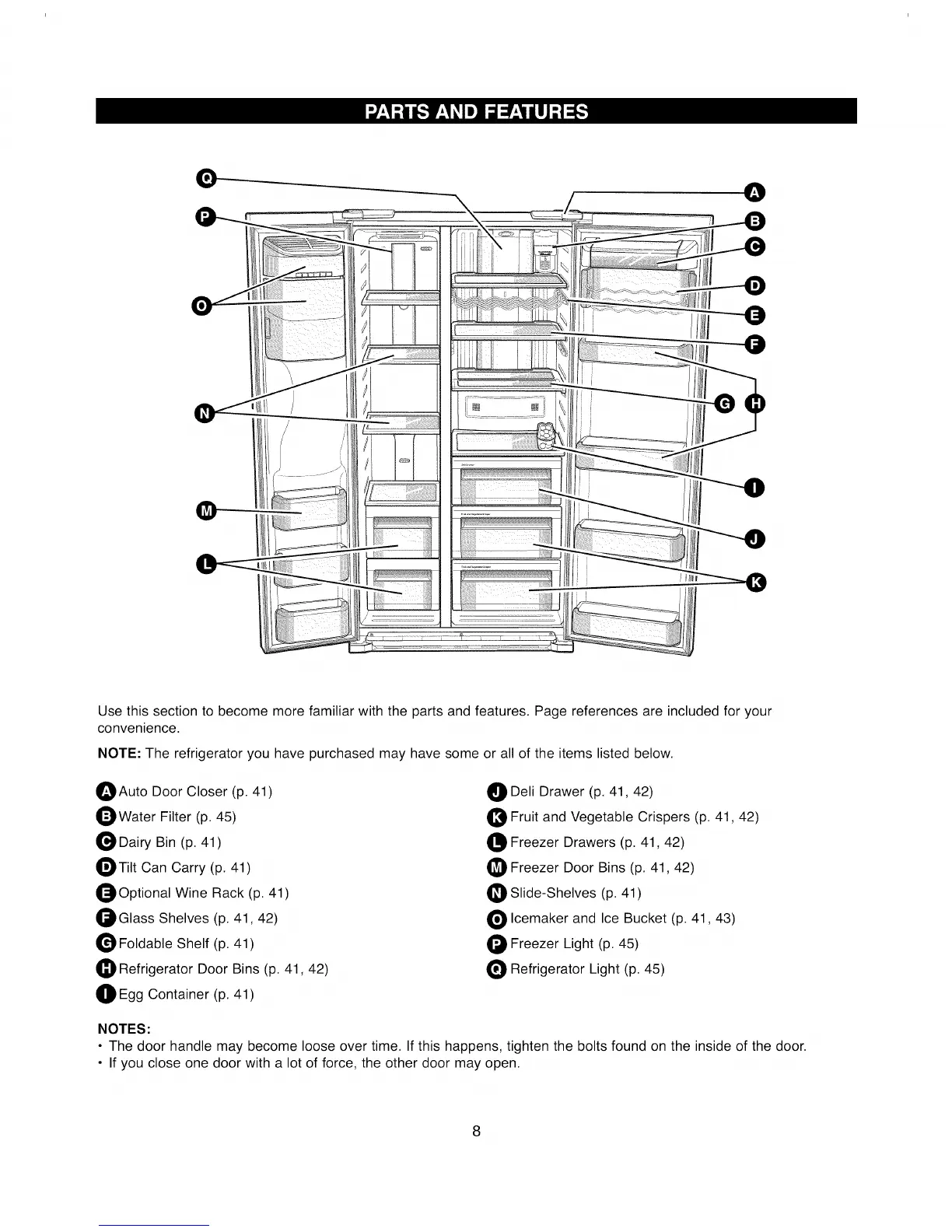 NOTE: The refrigerator you have purchased may have some or all of the items listed below.