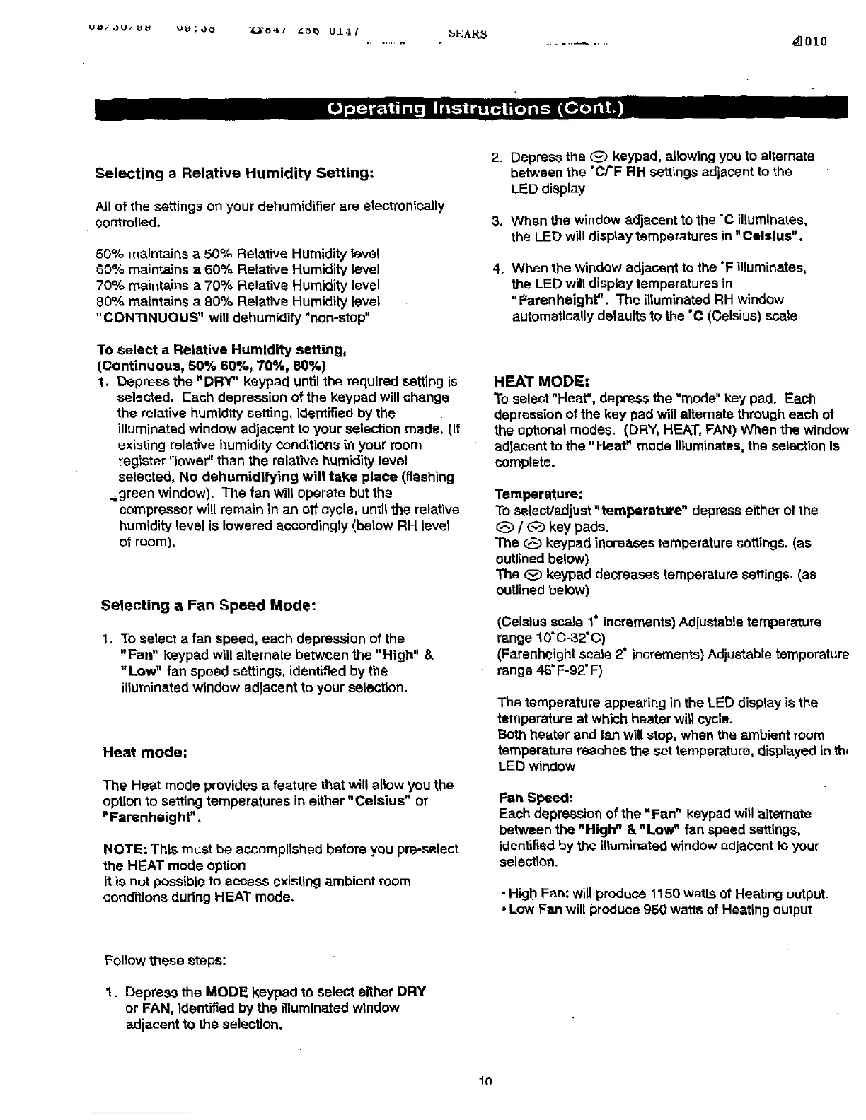 "CONTINUOUS" will dehumidify "non-stop"