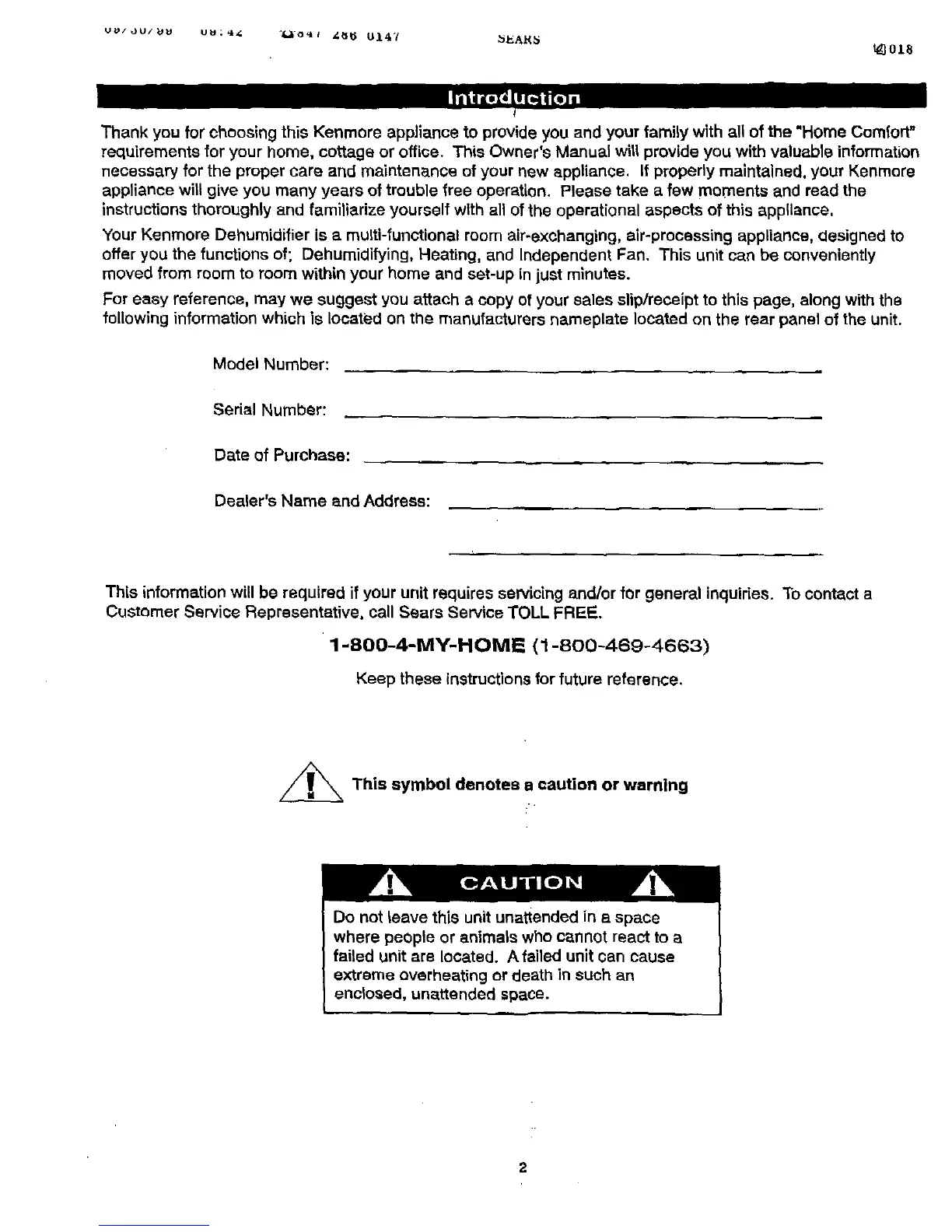 Thank you for choosing this Kenmore appliance to provide you and your family with all of the "Home Comfort"