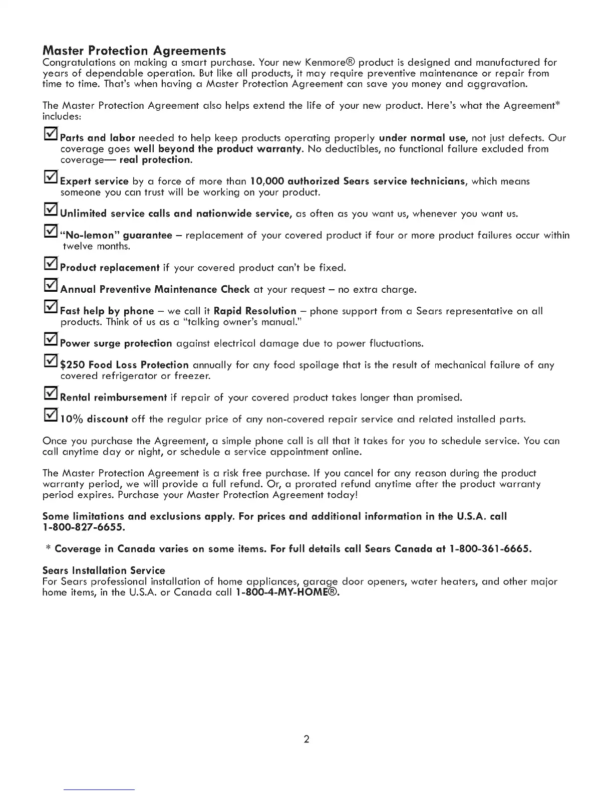 Coverage in Canada varies on some items. For full detalls call Sears Canada at 1-800-361-6665.