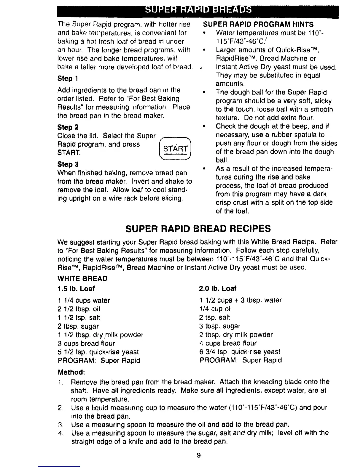 We suggest starting your Super Rapid bread baking with this White Bread Recipe, Refer