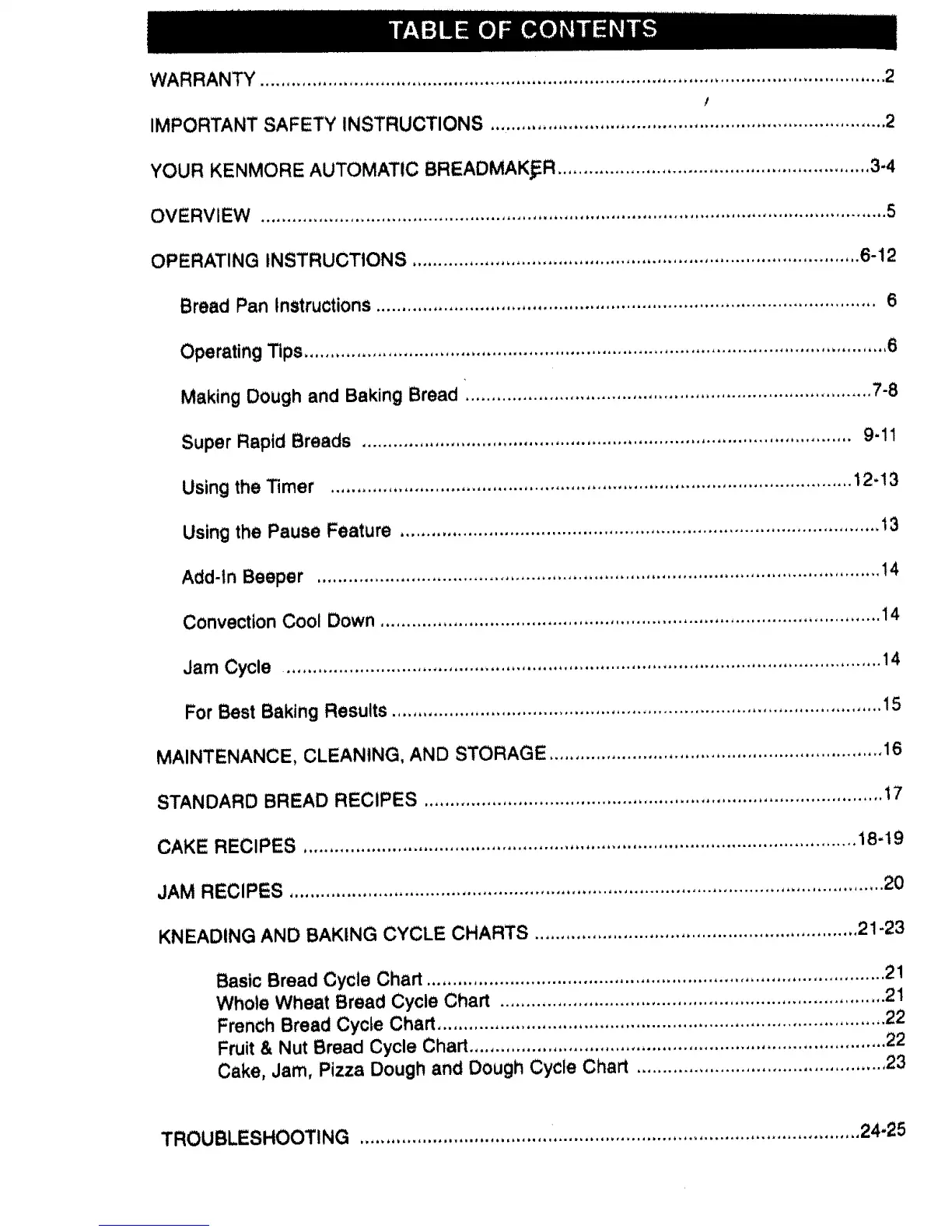 YOUR KENMORE AUTOMATIC BREADMAK_R ............................................................ 3-4