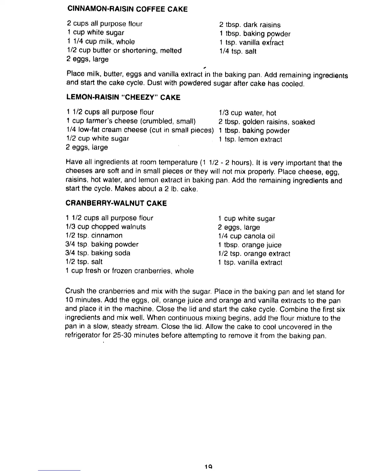start the cycle. Makes about a 2 Ib. cake.