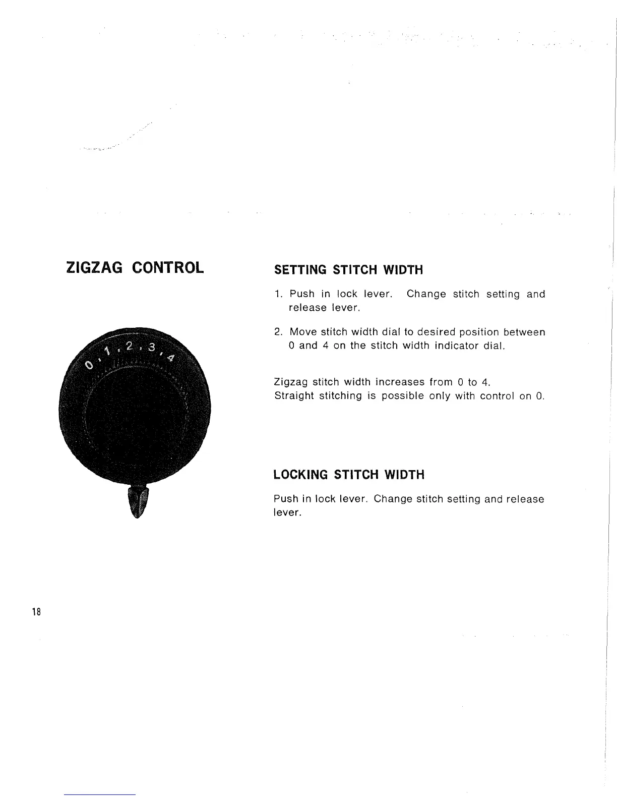 0 and 4 on the stitch width indicator dial.