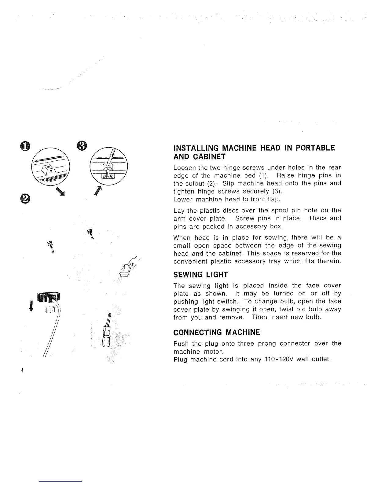 the cutout (2). Slip machine head onto the pins and