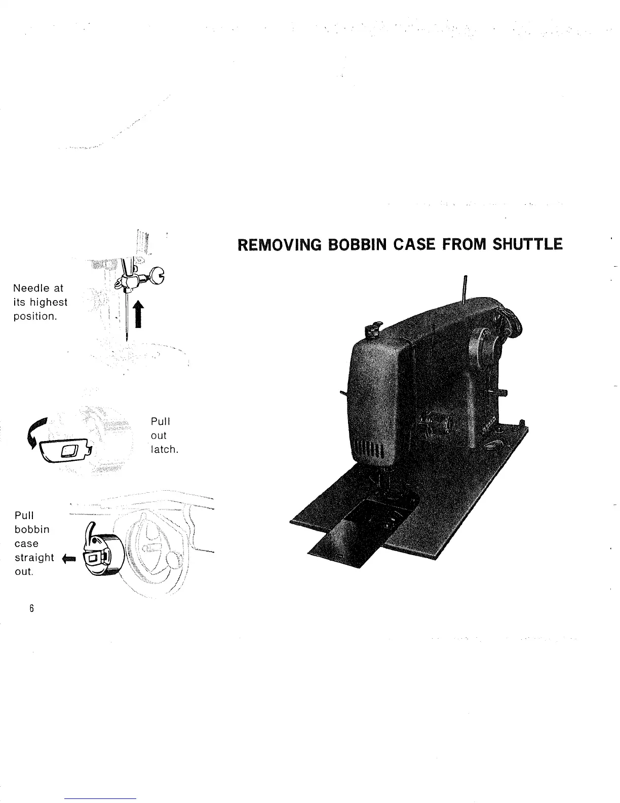 REMOVING BOBBIN CASE FROM SHUTTLE