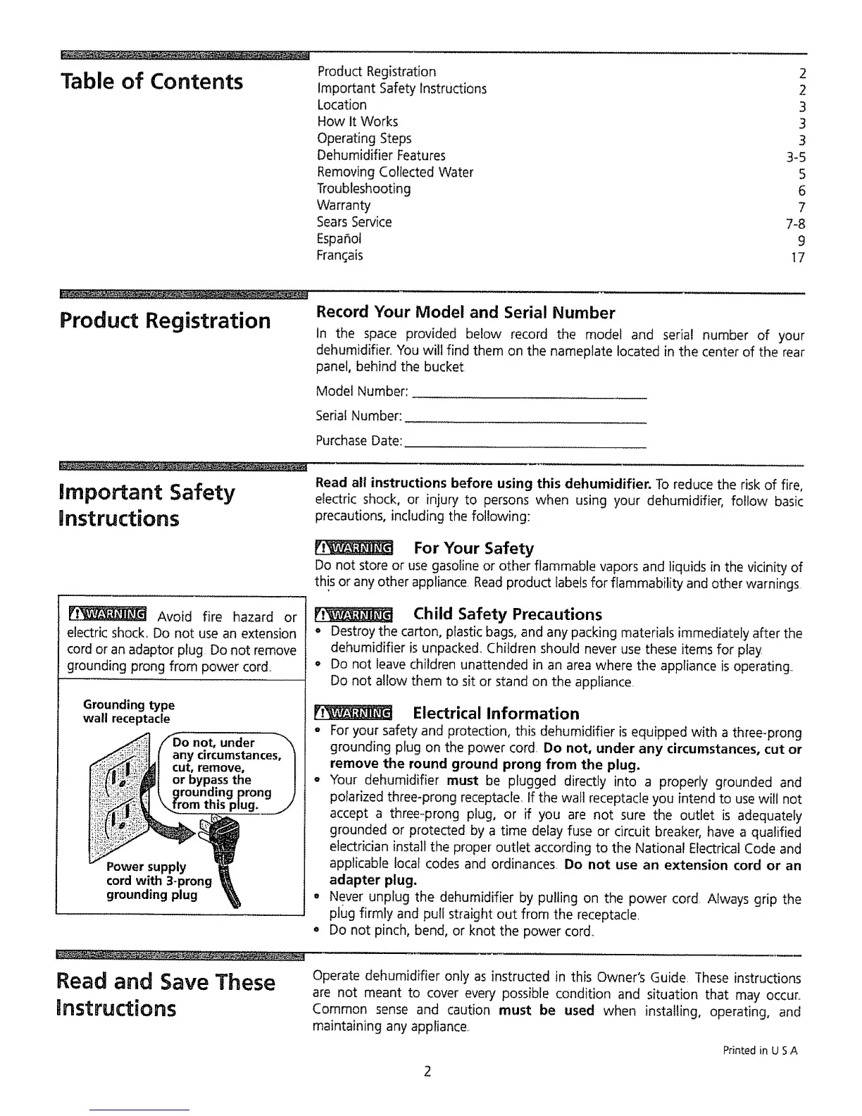 Foryour safety and protection, this dehumidifier is equipped with a three-prong