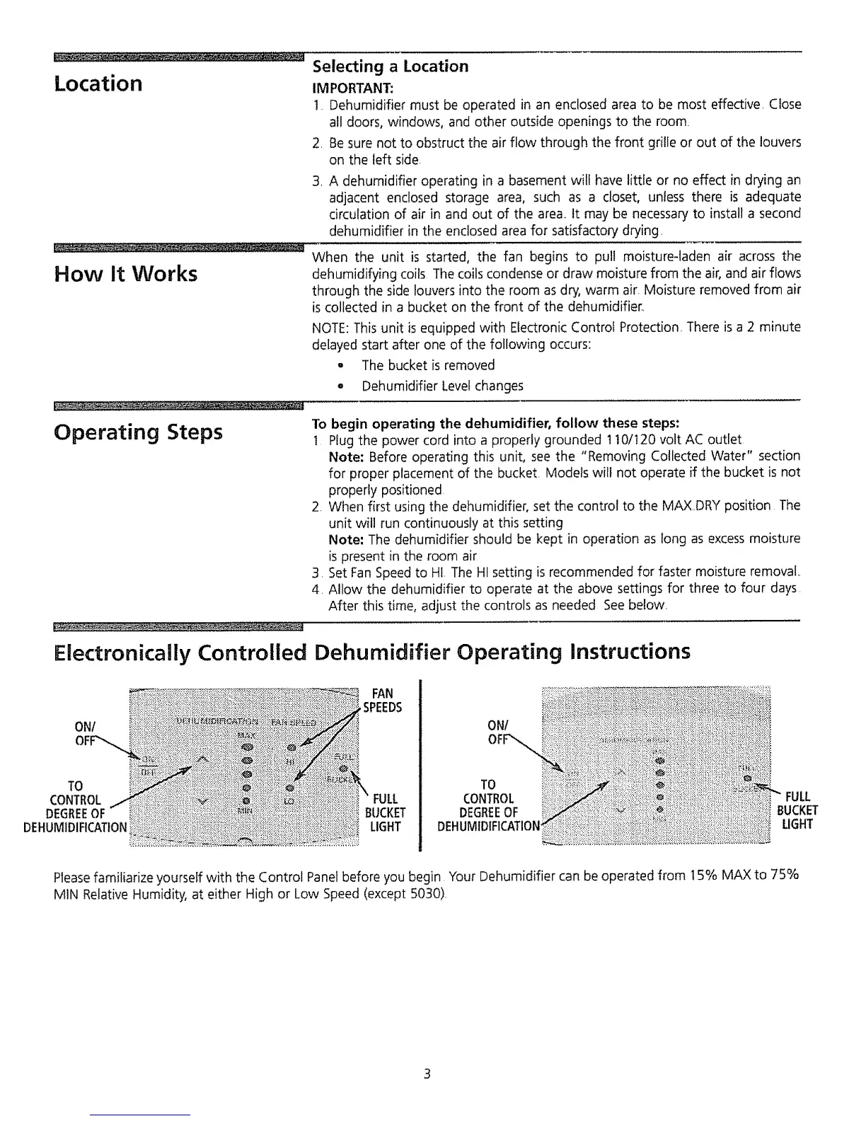Electronically Controlled Dehumidifier Operating Instructions