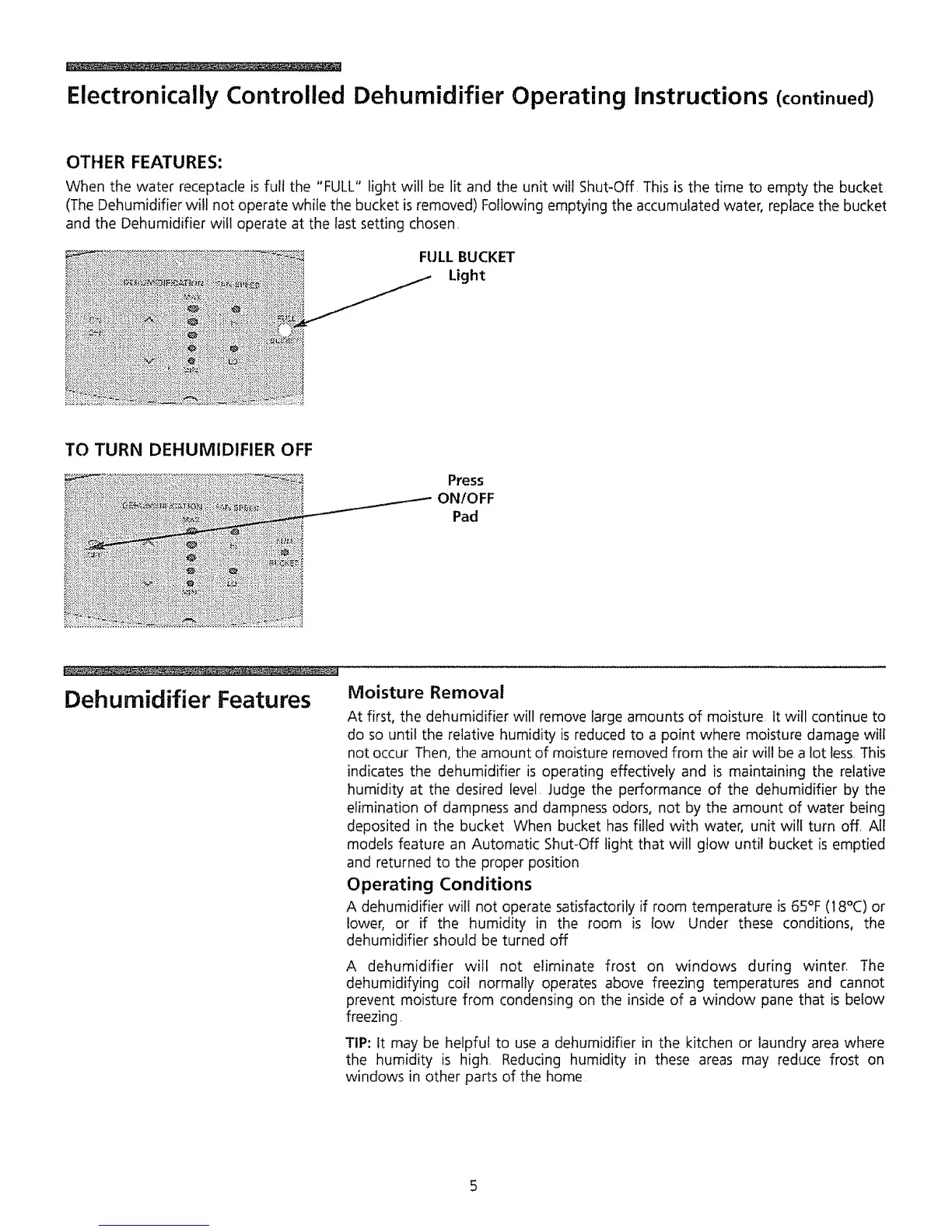 Electronically Controlled Dehumidifier Operating Instructions (continued)