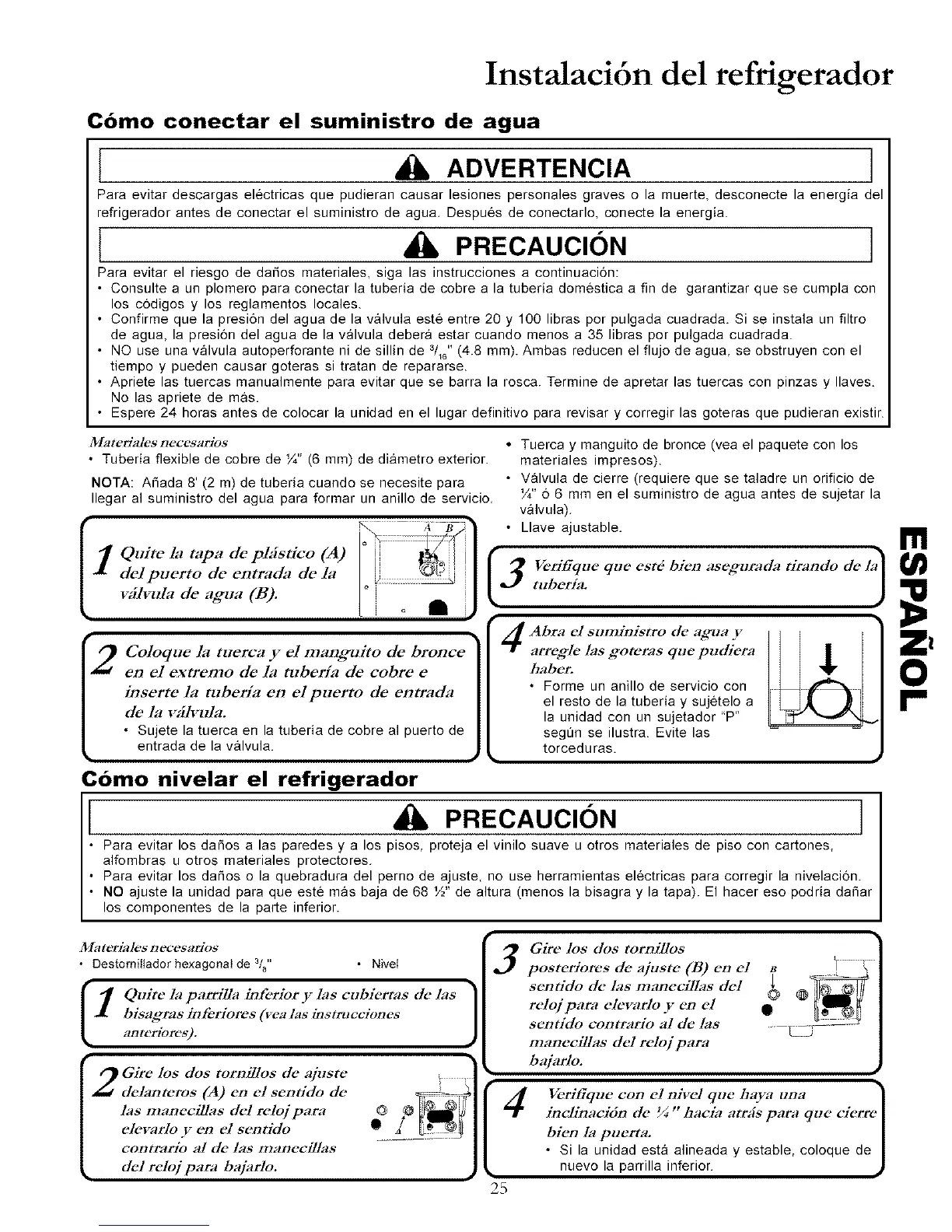 • Tuberia flexible de cobre de _¼"(6 mm) de diametro exterior, materiales impreses).